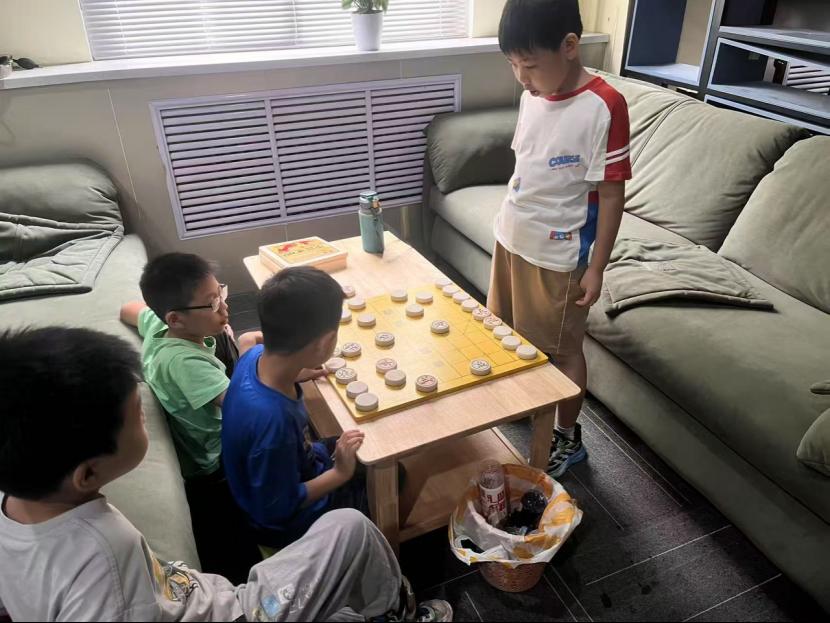 聚焦教职工子女暑期看护难题,分工会为教师子女开设“1+N”暑托服务模式——“1”即基础看护(作业辅导、安全管理),“N”即特色课程(美育、低碳、科普和智力拓展等)。在教师成长中心精心组织托管服务,提供奇幻电影放映、棋类比赛(象棋、围棋)、丰富零食水果等多样化服务,并全程陪伴、悉心照看,确保安全快乐,让教师心无旁骛。
