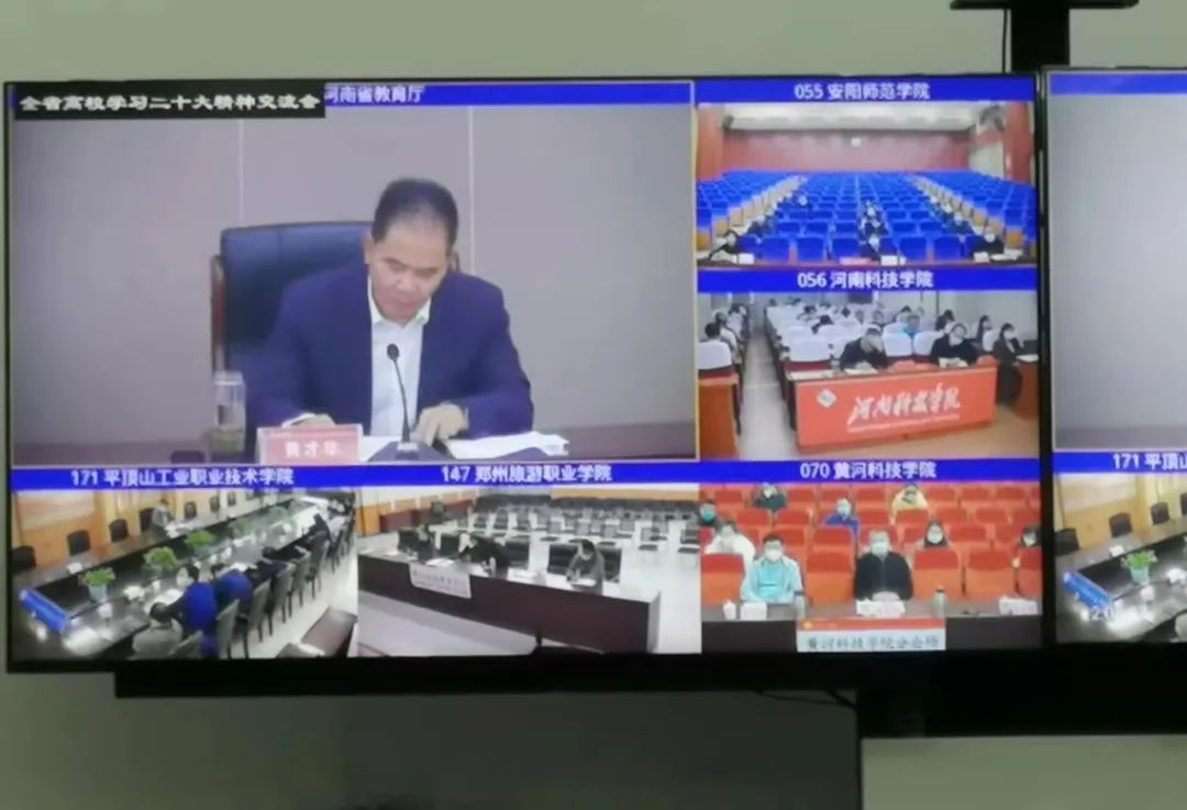 为深入学习宣传贯彻党的二十大精神和习近平总书记视察陕西延安和河南安阳重要讲话精神,11月11日,省委教育工委、省教育厅组织召开了全省高校社科战线学习宣传贯彻党的二十大精神研讨交流视频会。beat365在信息大楼一楼报告厅设分会场学习。马克思主义学院、校社科联、教务科研处、民办教育研究院等相关人员参加会议。