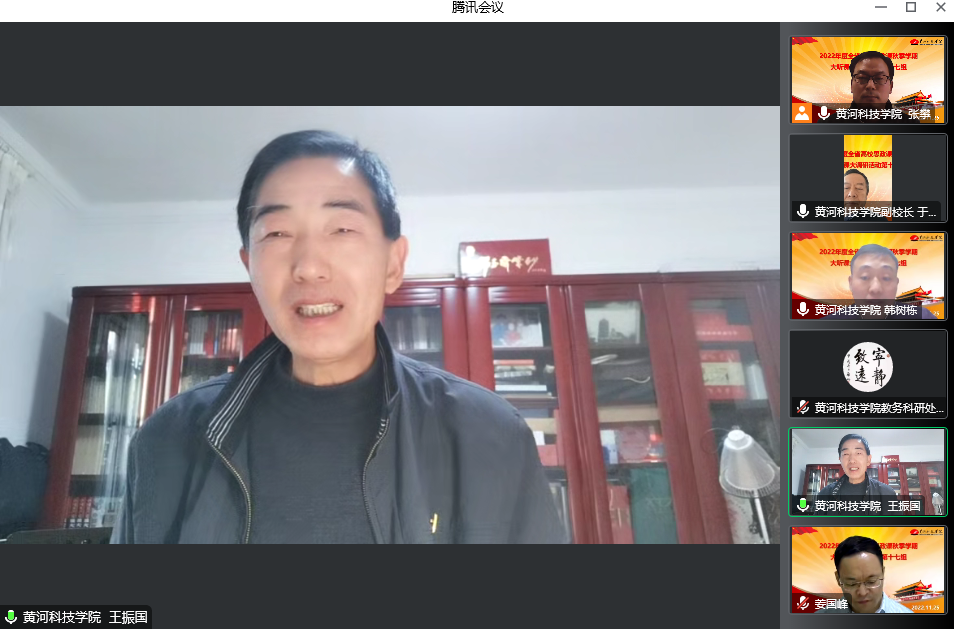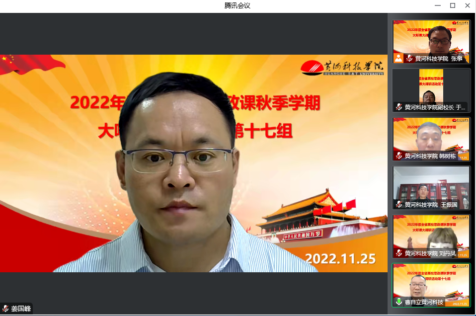 根据河南省委教育工委、河南省教育厅《关于开展2022年度全省高校思政课秋季学期“大听课”“大调研”活动的通知》安排,11月25日,由河南工程学院马克思主义学院院长姜国峰担任组长,河南警察学院马克思主义学院副院长王朝辉、河南工程学院马克思主义学院教授周书焕、河南财政金融学院马克思主义学院教授张珺倩为成员的第十七调研组采取线上会议形式召开beat365思政课建设座谈会。副校长于向东出席会议并致辞,校党委委员、宣传部部长王军胜,教务科研处长李高申、马克思主义学院院长王振国以及马克思主义学院班子成员、思政课教师代表参加会议。会议由马克思主义学院党支部书记韩树栋主持。