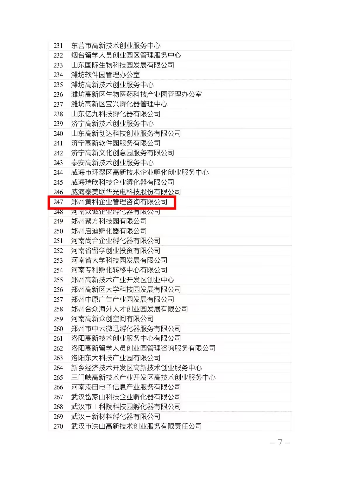 为加强国家级科技企业孵化器管理,推动创业孵化载体规范化、体系化、专业化建设,根据《科技企业孵化器管理办法》(国科发区〔2018〕300号)和《科技企业孵化器评价指标体系》(国科火字〔2019〕239号)相关要求,科技部火炬中心开展了对2021年度国家级科技企业孵化器的考核评价工作。通过年度统计数据和总结上报、定量计算评价、专家定性评价和地方评价等严格程序,共有386家国家级孵化器被评为优秀(A类),其中河南省20家;617家被评为良好(B类),262家被评为合格(C类),12家被评为不合格(D类)。