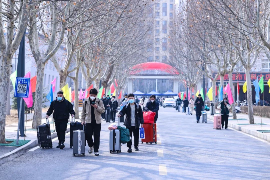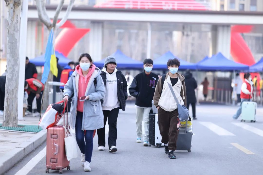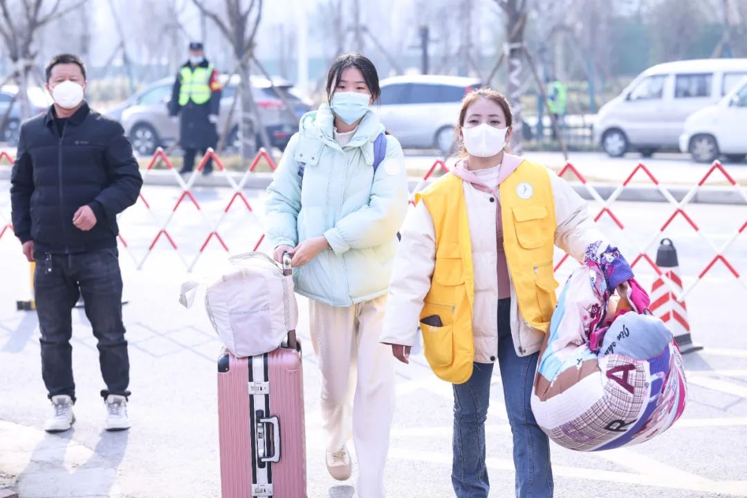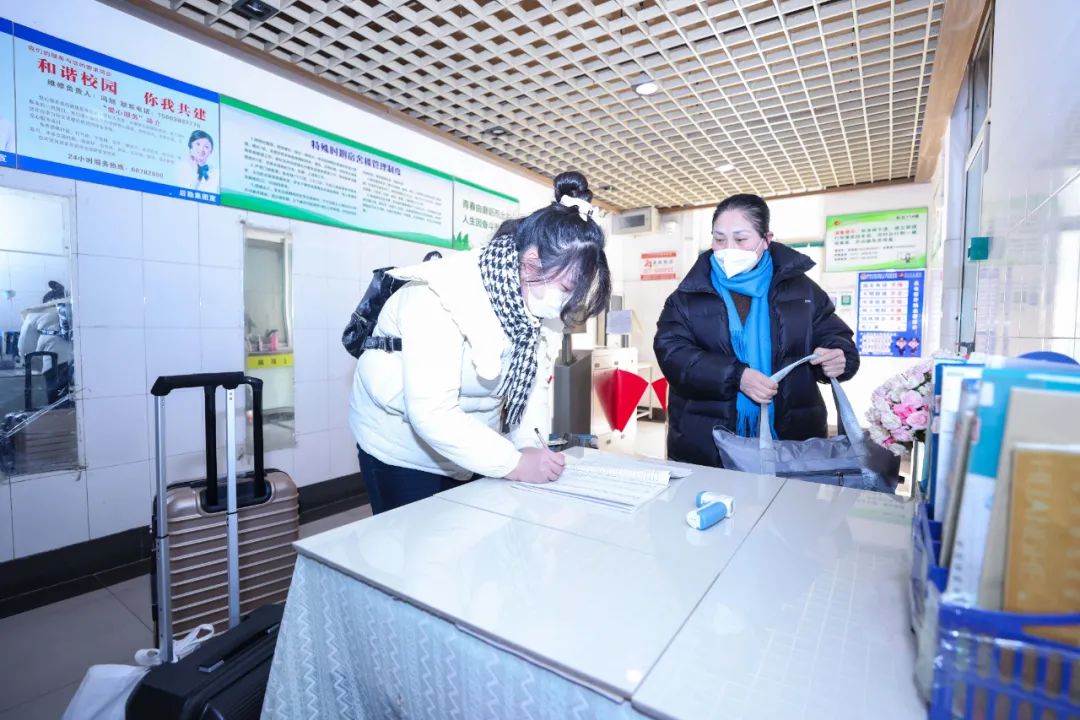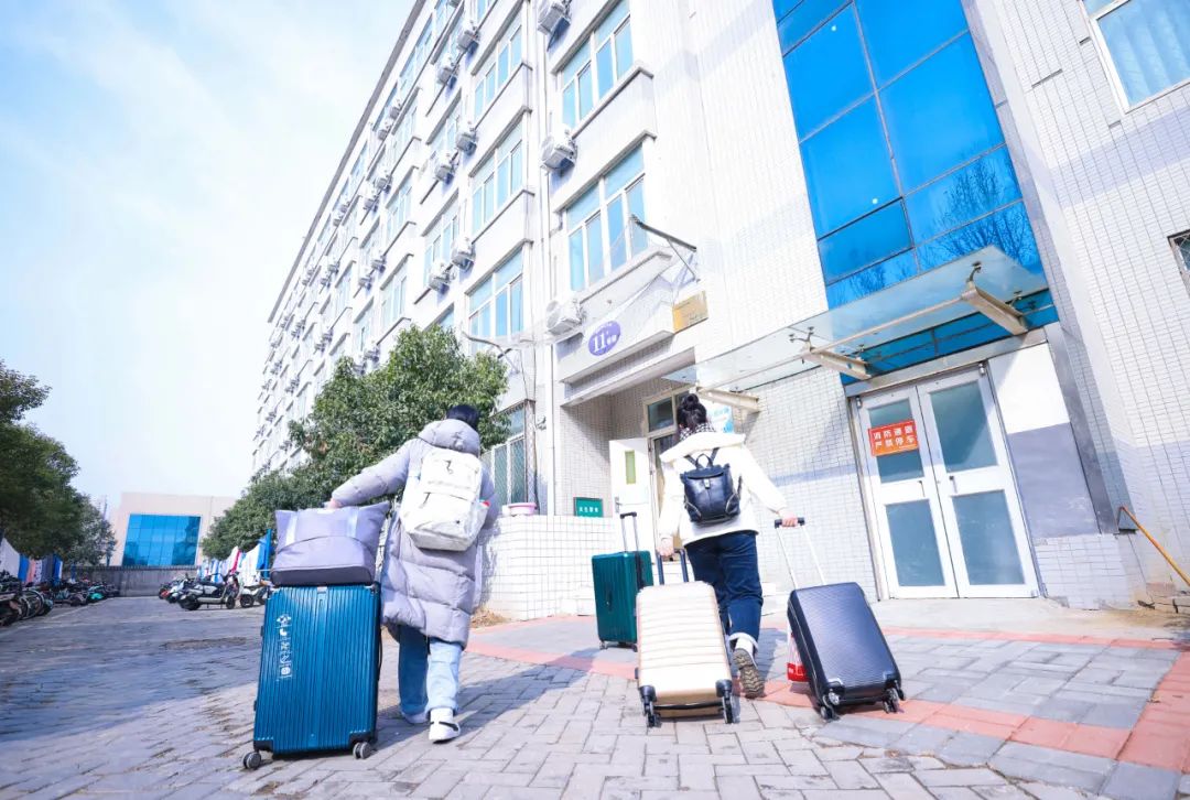 2月16日一大早,宿管老师就热情地在各宿舍楼前迎接同学们的到来,宿舍区到处都能够看到老师帮同学们提行李、欢声笑语的温馨画面。同学们一见到宿管老师,就像阔别重逢的朋友,激动的与其寒暄、分享假期趣事,让这相聚的日子,因为期待而变得闪耀!
