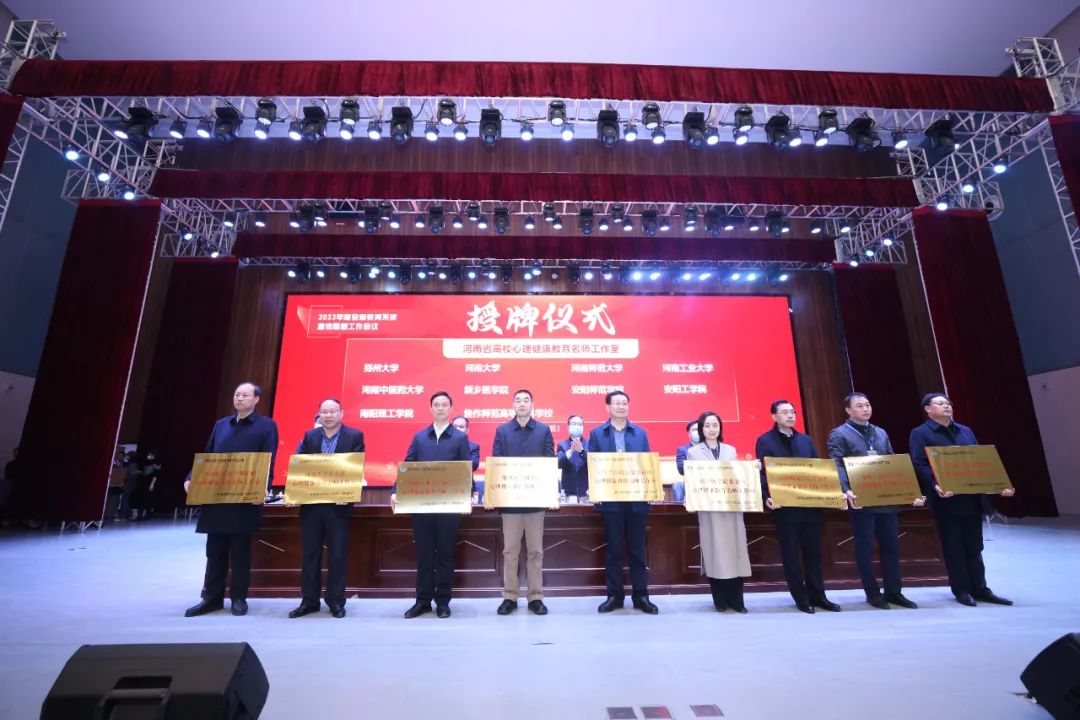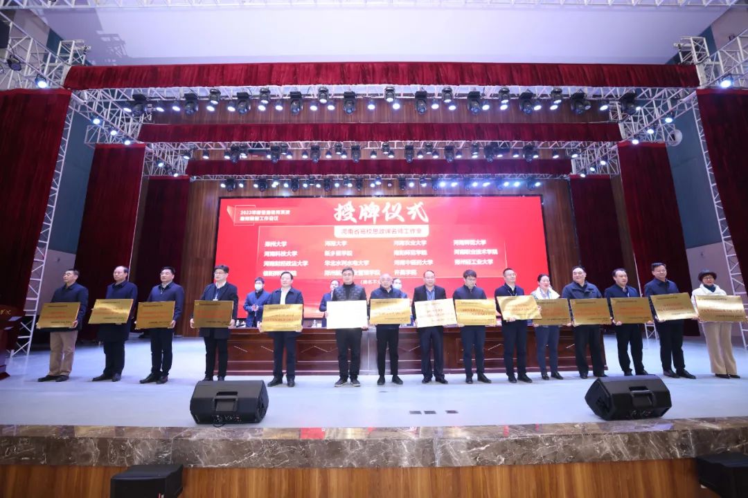 会上,吕冰宣读4类河南省思政名师工作室文件。与会领导为15个省高校思想政治理论课名师工作室、10个省高校网络教育名师工作室、10个省高校心理健康教育名师工作室、10个省高校辅导员工作室颁奖授牌。