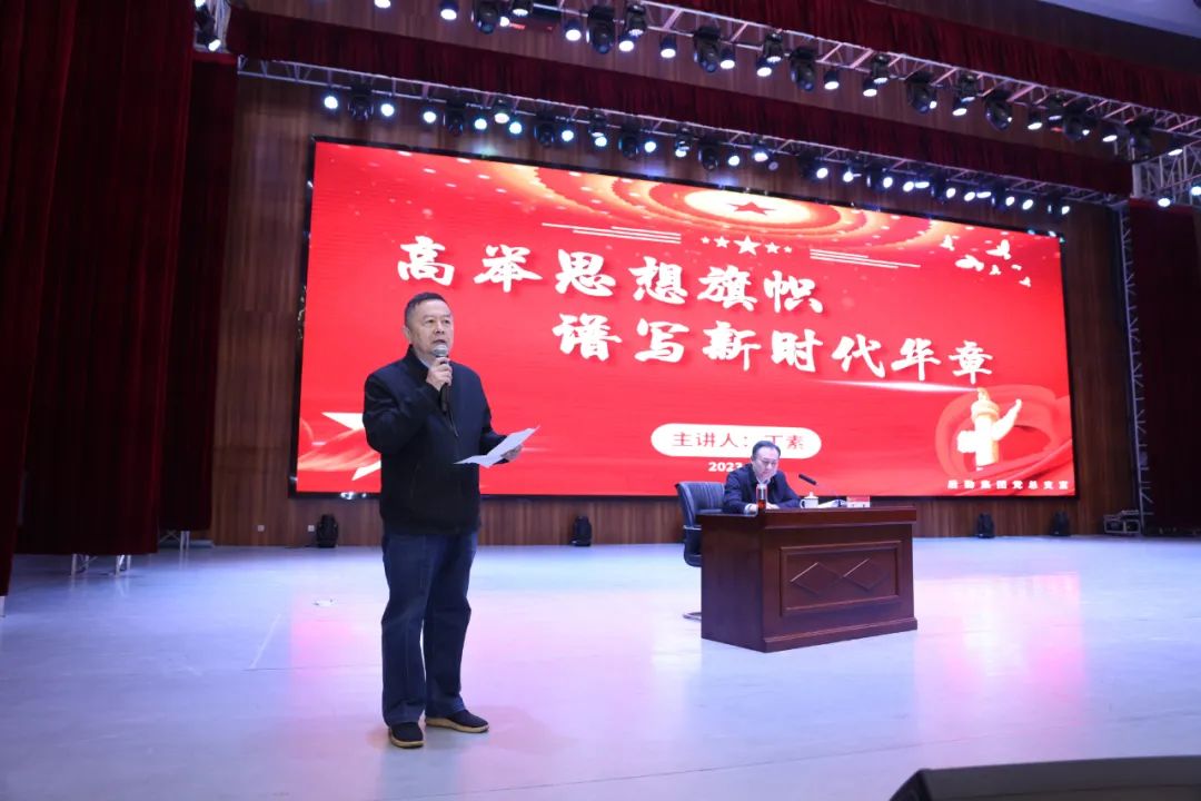 为深入学习贯彻党的二十大精神 ,3月4日,后勤集团党总支特邀中共河南省委党校原教育长,党组成员,二级教授,河南省省管专家——丁素教授,来beat365进行党的二十大精神宣讲。丁素以《高举思想旗帜、谱写新时代华章》为题,对二十大精神进行了解读。校长杨雪梅、副校长于向东、后勤党总支书记邹玉勤及后勤党总支全体党员、群众代表参会。杨雪梅与丁素教授进行了深入的交流。于向东主持报告会。