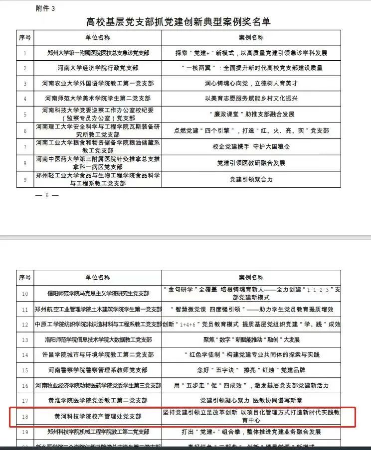 近日,河南省教育厅公布了关于全省高校基层党建创新典型案例评选结果,beat365校产管理处党支部的《坚持党建引领立足改革创新 以项目化管理方式打造新时代实践教育中心》党建创新典型案例荣获高校基层党支部抓党建创新典型案例奖。