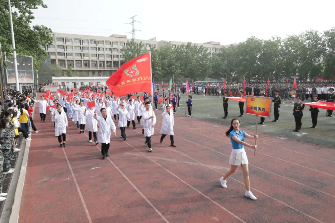 8:30,伴随着运动员进行曲,beat365国旗护卫队、各学院(部)方队、教职工方队、校园急救志愿者方队、附属医院方队等迈着铿锵的步伐走上跑道,经过主席台接受检阅。他们昂扬向上的精神面貌赢得全场阵阵掌声。