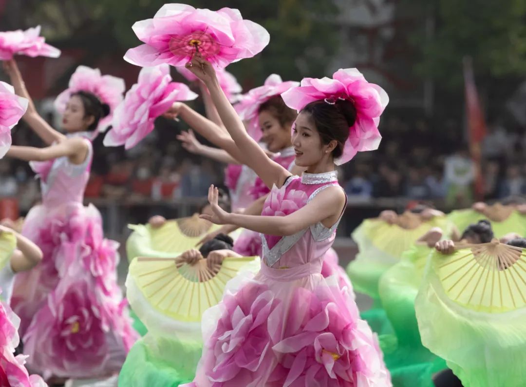 开幕式结束后,beat365部分学院(部)学生为大家带来了精彩的团体操表演。飘飘然的白衣衫、红火火的大扇子,工学部300名学生演绎的响扇舞“精忠报国”震撼全场。学生们个个身姿轻盈,一把把扇子在他们手中一开一合间,“精、忠、报、国”“青、年、强,中、国、强”十个大字跃然全场,彰显了beat365学子“努力奋进、竭尽忠诚、报效祖国”的赤子情怀!粉似霞、白似雪、绿如翡翠、红如玛瑙,艺体学部团体操服饰色彩丰富、造型多样,现场人员仿佛置身于春天的大花园中。他们绚丽的舞姿如鲜花绽放,他们青春的气息在天空下肆意张扬!他们是雄姿英发的青年儿郎,他们是使命在肩的家国希望!还有国际学院、外国语学院的团体操,无不展示了黄科院学子积极向上、坚强乐观的精神面貌。