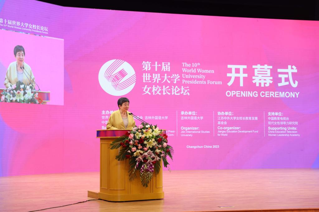 开幕式上,全国人大常委会原副委员长、全国妇联原主席陈至立,联合国教科文组织原总干事伊琳娜·博科娃,教育部原副部长李卫红,世界大学校长联合会主席、墨西哥赛提斯大学校长费尔南多·加西尔,全国妇联副主席、书记处书记吴海鹰,欧洲大学女校长协会主席居尔松·萨拉莫,吉林省副省长梁仁哲等领导嘉宾分别致辞。