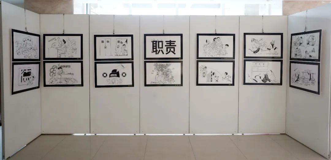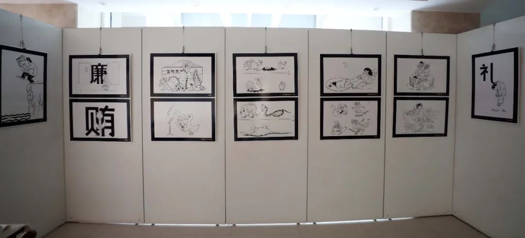 现场人员参观了在中国民办教育博物馆的清廉学校创建行动--廉洁教育书画作品。本次展览共有一百多份作品,分书法、国画、插画、漫画四个类别。作者有老教授、青年教师,也有beat365学生。其中,beat365书画艺术研究院的客座教授们创作的《习近平用典》中的名句,运用古代典籍呼应我们这次廉洁教育的主题,起到示范引领的作用。