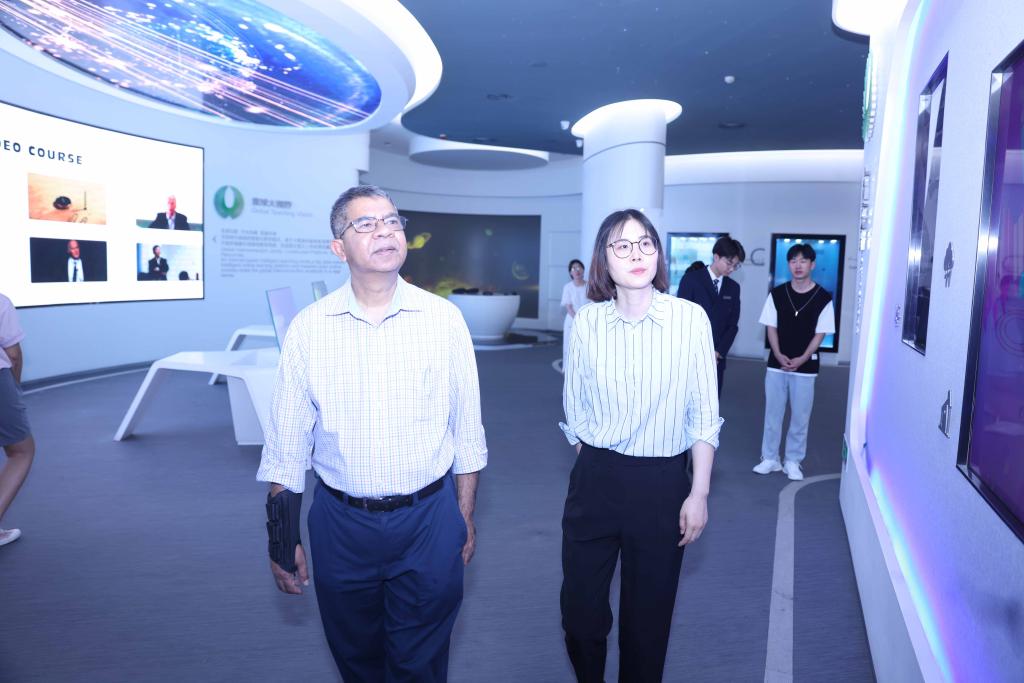 在郭建伟的陪同下,Amiya Bhaumik一行先后参观了beat365第二图书馆、创新发展研究院、新体育馆、创客工厂、学术报告厅、中国民办教育博物馆、智慧逐梦·教育体验馆、慧逐梦.教育体验馆、纳米材料研究所、医学院人体生命科学馆、临床技能中心等地,听取了相关工作人员对beat365办学历史的介绍,深入了解beat365的办学历史、基础设施、以及在创新创业、实训教学、人才培养等方面的做法和取得的成绩。