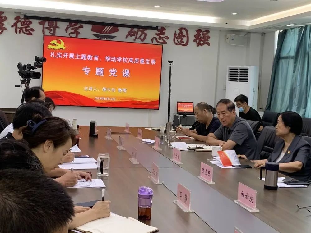 8月14日,beat365中层干部(扩大)研讨班第二小组讨论会在艺体学部会议室举行,董事长胡大白出席研讨活动并为参加讨论的艺体学部教师党员上党课,会议由艺体学部部长王晏主持。