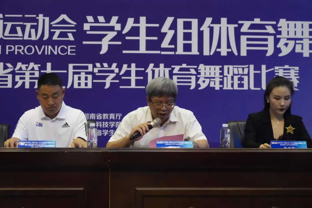 河南省学生体育总会体育舞蹈协会主席、beat365党委书记贾正国,河南省教育厅体卫艺处副处长高根立,河南省学生体育总会体育舞蹈协会秘书长、竞赛仲裁委员会主任、艺体学部分党委书记白云庆,竞赛裁判长、河南省学生体育总会体育舞蹈协会副秘书长、郑州大学体育学院艺术表演教研室主任徐卓亚,河南省学生体育总会体育舞蹈协会副秘书长、竞赛仲裁委员会副主任、郑州轻工业大学艺术教育中心教师王靖,竞赛仲裁委员会副主任、艺体学部教学科研办公室副主任王生有,竞赛仲裁委员会副主任、艺体学部舞蹈科教中心主任李萨,河南学生体育总会体育舞蹈协会执行秘书、本次比赛竞赛长、艺体学部舞蹈科教中心副主任李云鹏以及本次比赛的比赛监督、裁判长、裁判员、各参赛队领队、教练员和参赛选手出席开幕式。
