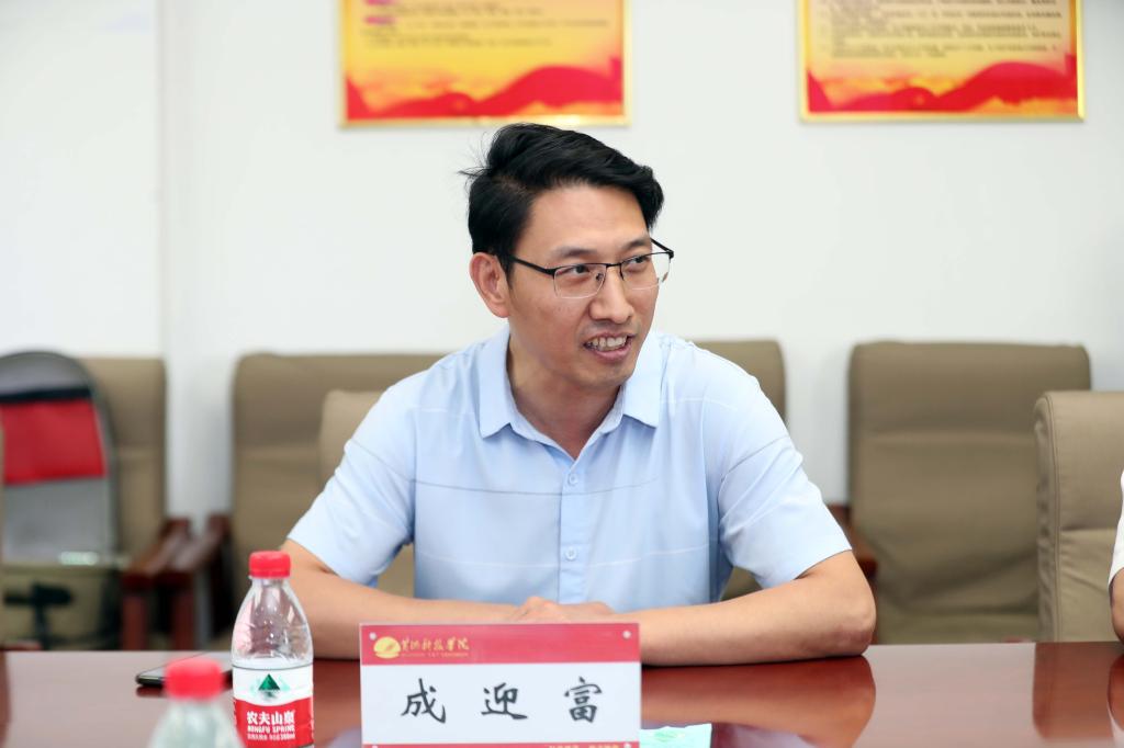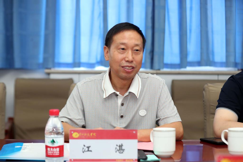 贾正国代表学校对江湛副县长一行表示热烈欢迎,杨保成向客人介绍了学校的基本情况和有关创建一流应用科技大学方面所取得的成效。