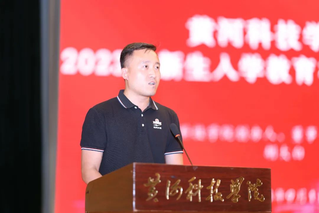 胡大白从学校的标识说起,她说学校如一轮喷薄欲出的太阳,是充满生机、充满活力的,她向同学们深情讲述了黄科院以30元起家,从自学考试辅导班到现在成为拥有四个校区,占地2800多亩,校舍建筑面积110多万平方米的现代化学校的奋斗历史,讲述了学校从无到有、从小到大,敢为人先、迅猛发展的波澜壮阔,带领新生们感受学校39年风雨历程所积淀的文化底蕴、优良传统。