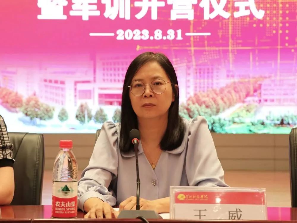 最后,王威做总结讲话。她指出,大学生活丰富多彩,既有无尽的机会,但又充满着挑战,她希望2023级新生:要热爱学习,善于学习,坚持理论联系实际、知行合一;要积极上进,立志创新,打破常规,真正成长为顺应时代发展的创新人才;要爱国爱校,求真求善,弘扬先进文化,建设好共同的精神家园;要追求真理,追求卓越,使其成为终身受益的幸福泉源。