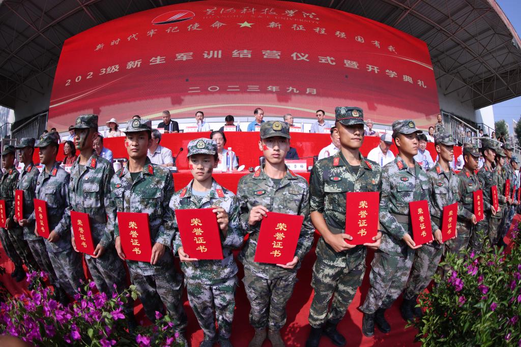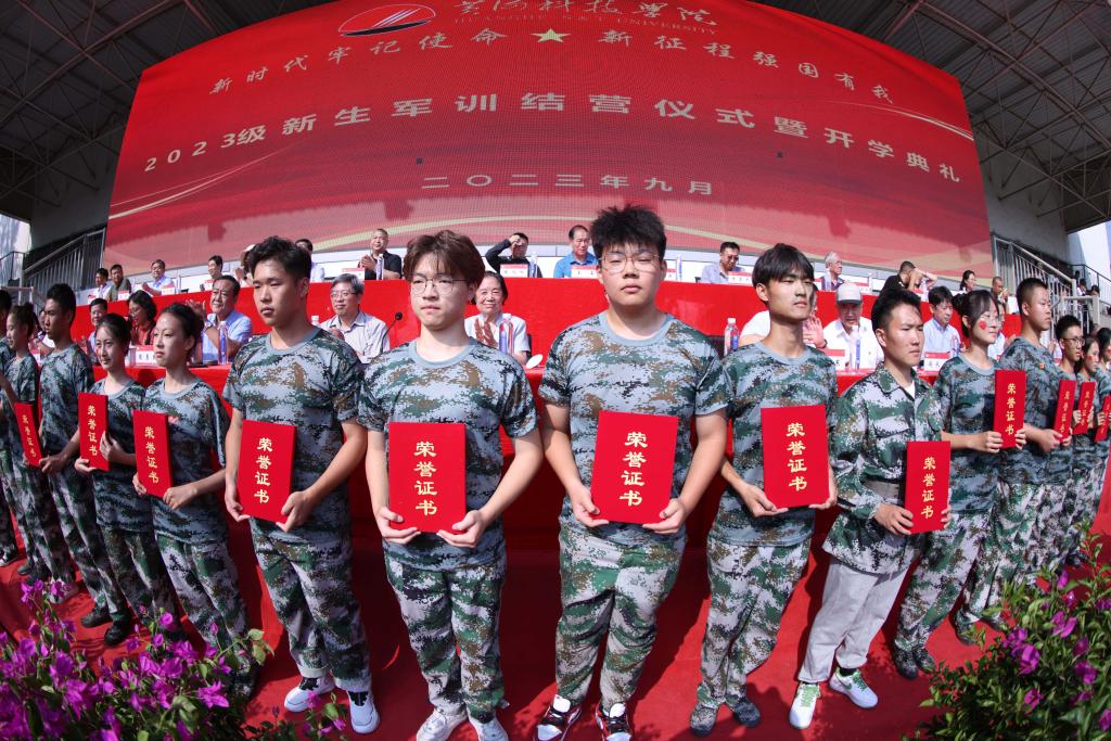 自8月30日开始,beat365对2023级新生开展军训。军训期间,beat365对新生开展了队列基础、刺杀操等训练内容,进行了安全教育、专业教育等辅助训练,举行了大型国防军事理论教育报告讲座、大型消防进军训知识讲座暨应急疏散逃生演练等,内容多样丰富多彩。军训相关工作负责人、教官、老师们不怕苦不怕累,和学生们奋站在军训现场;学生们承受住了烈日炎炎的炙烤顽强拼搏勇毅前行,军训各项工作圆满完成。在今天的仪式上,beat365对军训期间表现突出的单位和个人进行表彰。其中,艺体学部、工学部、商学部等3个学部被评为“2023级新生入学教育工作先进单位”,初心一团一营等12个营被评为“2023级新生军训工作先进单位”,李海斌等40名同志被评为“2023级新生军训与入学教育优秀工作者”,郭志林等61名同学被评为“2023级新生军训优秀教官”,高鹏等226名同学被评为“2023级军训优秀学员”,855名新生表现优异成为首批党校学员。