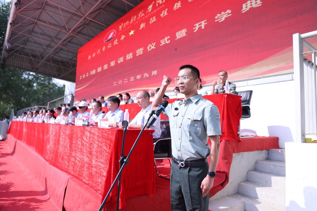 “未来的几年内,我们一定会以饱满的热情、积极的心态、负责的态度,珍惜我们大学生活的每一天,珍惜我们身边的亲人、老师和朋友,刻苦学习,勇于创新,扣好自己人生的第一粒扣子。”仪式上,新生代表杨博仲同学表达了一代青年人对新生活的态度和决心。教师代表肖娜老师也给新生们送上建议:学会接纳新事物,适应新环境,融入新团队,争做黄科院新主人;拓展新视野,提升新认知,践行新作为,创造新佳绩;树立正确目标,坚定必胜信心,选定适合路径,找准科学方法,赓续军训成果,笃行前进动力。现场,全体新生郑重宣誓:“热爱祖国,热爱人民,热爱社会主义,热爱中国共产党,热爱beat365官网……,使自己在德智体美劳方面全面发展,努力成为社会主义事业的建设者和接班人!”