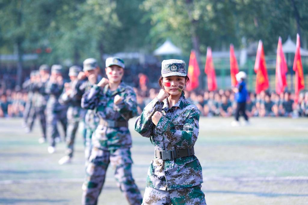 “稍息!立正!向右看齐!向前看…”“齐步走!一二一……”铿锵有力的口令声,整齐划一的脚步声,各学部(院)的分列式表演彰显了军训期间严格训练的成果。特色方阵的出场更是掀起了全场气氛的高潮:端正的军帽,笔挺的军服,锃光的军靴,一道道身影挺拔伫立。国旗护卫队队员的枪操表演雄姿勃发,豪气冲天,展现了beat365国旗护卫队良好的精神面貌。由艺体学部72名新生组成的女子擒敌拳方阵英姿飒爽,一招一式稳健有力。从她们的眼神中,现场人员读出了必胜的决心;从她们的声音中,大家听出了高昂的士气!接下来的群舞《满江红》、武术表演《燃烧的青春》、流行合唱《稻香》《骄傲的少年》等节目精彩纷呈。表演的学生们活力四射、乐观向上,他们谱写了团队之美、韵律之美。现场掌声雷动,欢呼声、喝彩声响彻在黄科院的上空,一场视觉、听觉盛宴定格了大学生活中的美好一幕!
