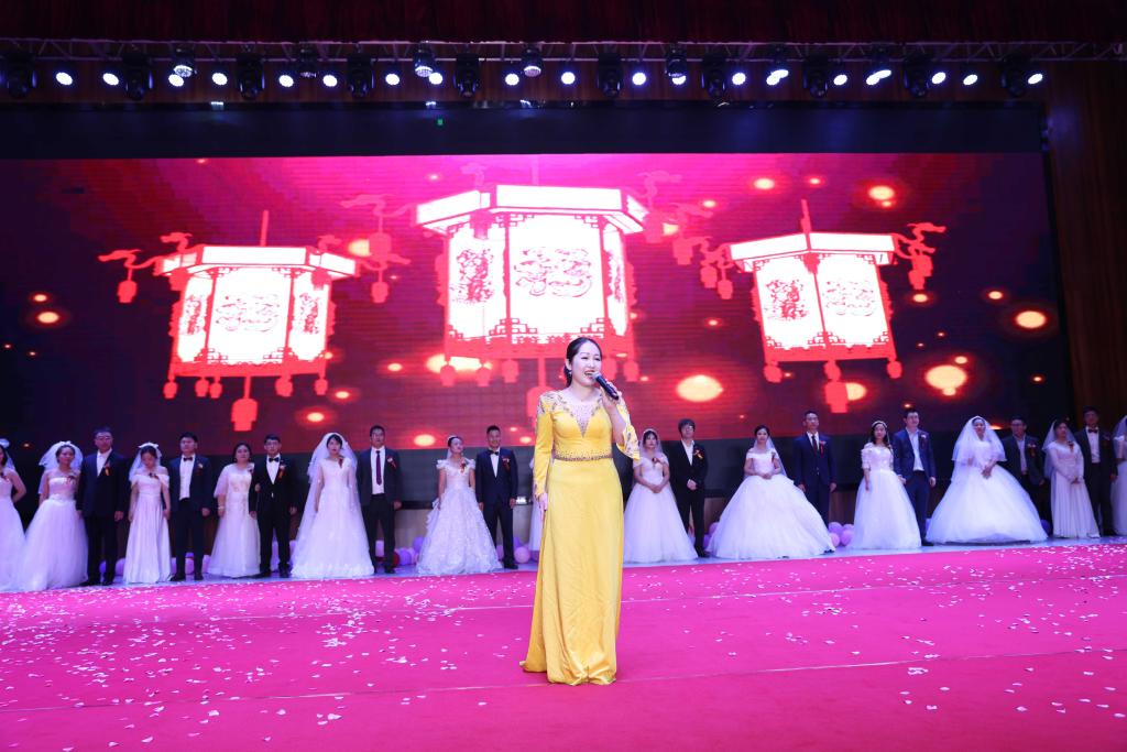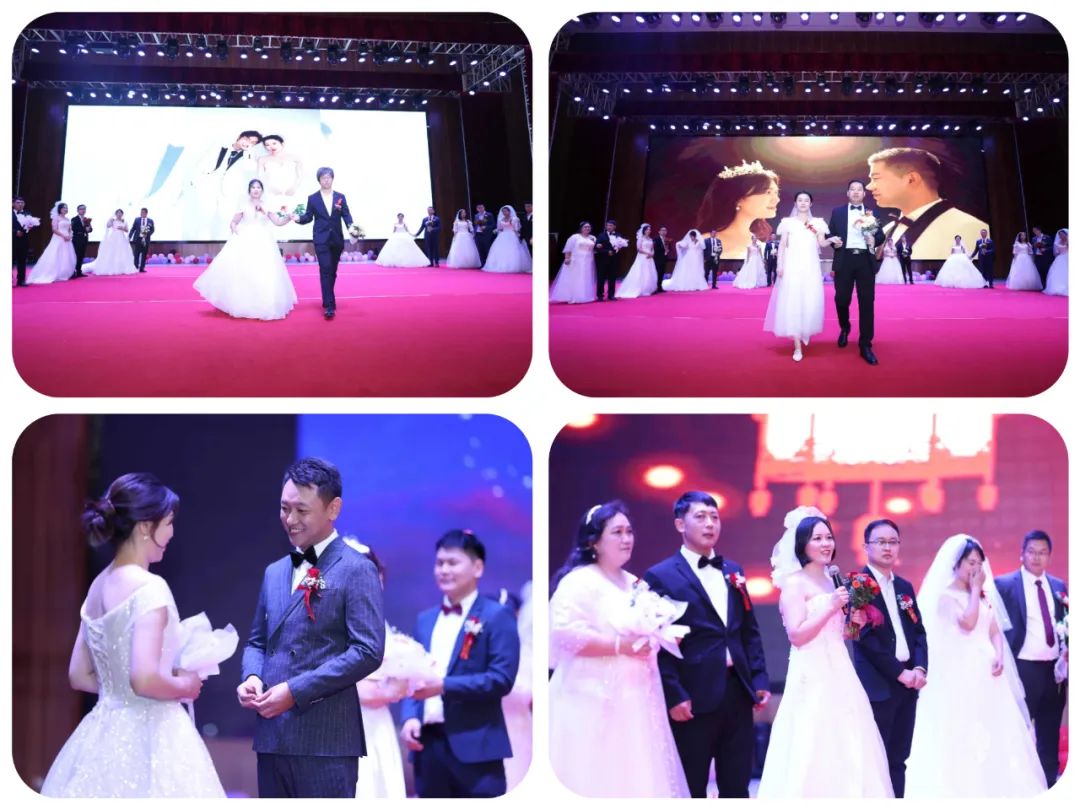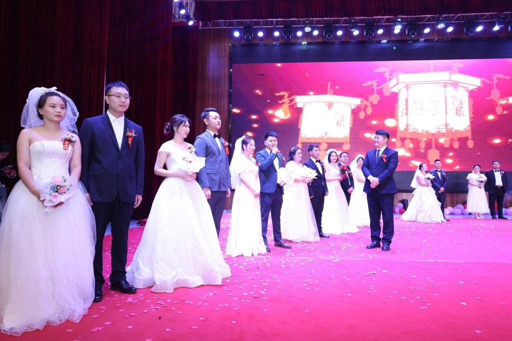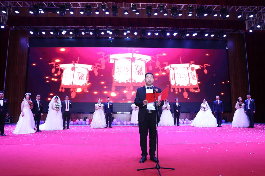 工会主席陈勇民为新人主婚。他说:“15对新人佳偶天成,跨越人生重要的里程碑,标志着新生活的开始,也意味着从此将承担更多的责任。”他希望各位新人在今后生活中互敬互爱,和睦相处,孝敬双方父母,做一个好丈夫、好妻子、好女婿、好儿媳;希望新人在今后工作中相互支持,相互鼓励,成为事业有成大好青年,用忠心、孝心、诚心、爱心和恒心面对今后的生活,获得爱情事业的双丰收!