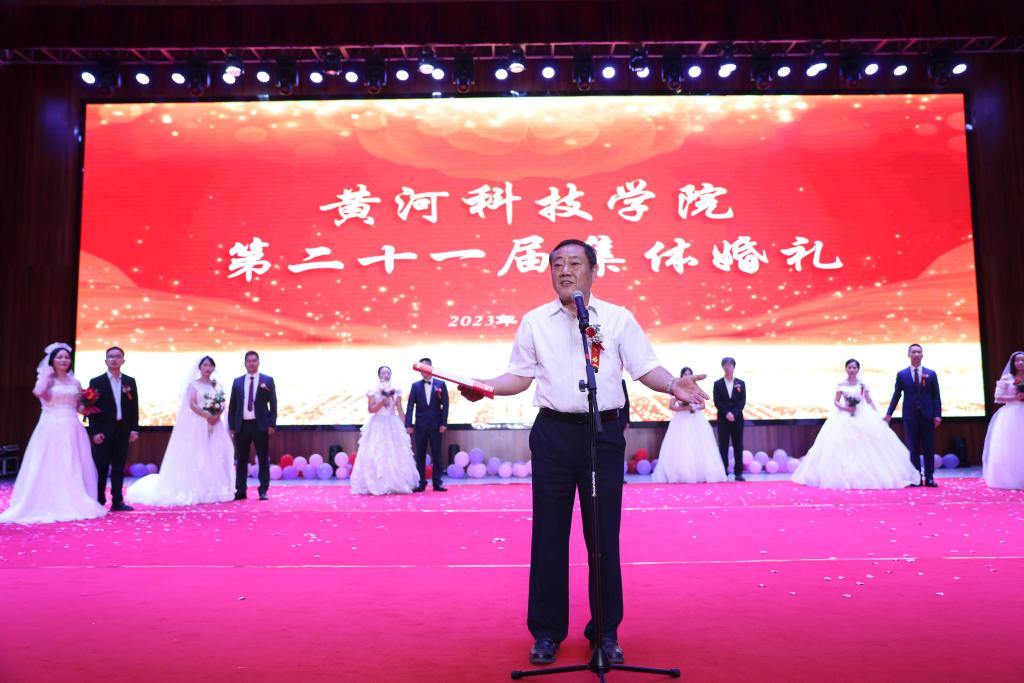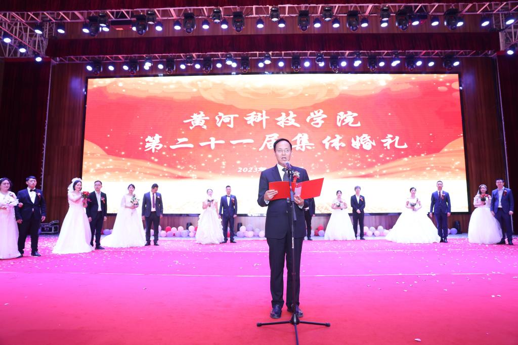 来自工学部的教师王康代表15对新人发言。他说:多年来,学校积极倡导婚事新办,移风易俗、勤俭办婚礼,帮助多名教职工组建了自己的小家庭,踏上了幸福之路。学校通过为教职工办实事、办好事,为教职工解除了后顾之忧,营造了更和谐的校园发展氛围,对学校长足发展和教职工队伍的稳定起到了较大的促进作用。王康老师希望自己在内的所有新人要倍加珍惜今天的幸福,用智慧和勤劳的双手,共建幸福美满的家庭;用聪明才智、青春热情为祖国的教育事业增光添彩。