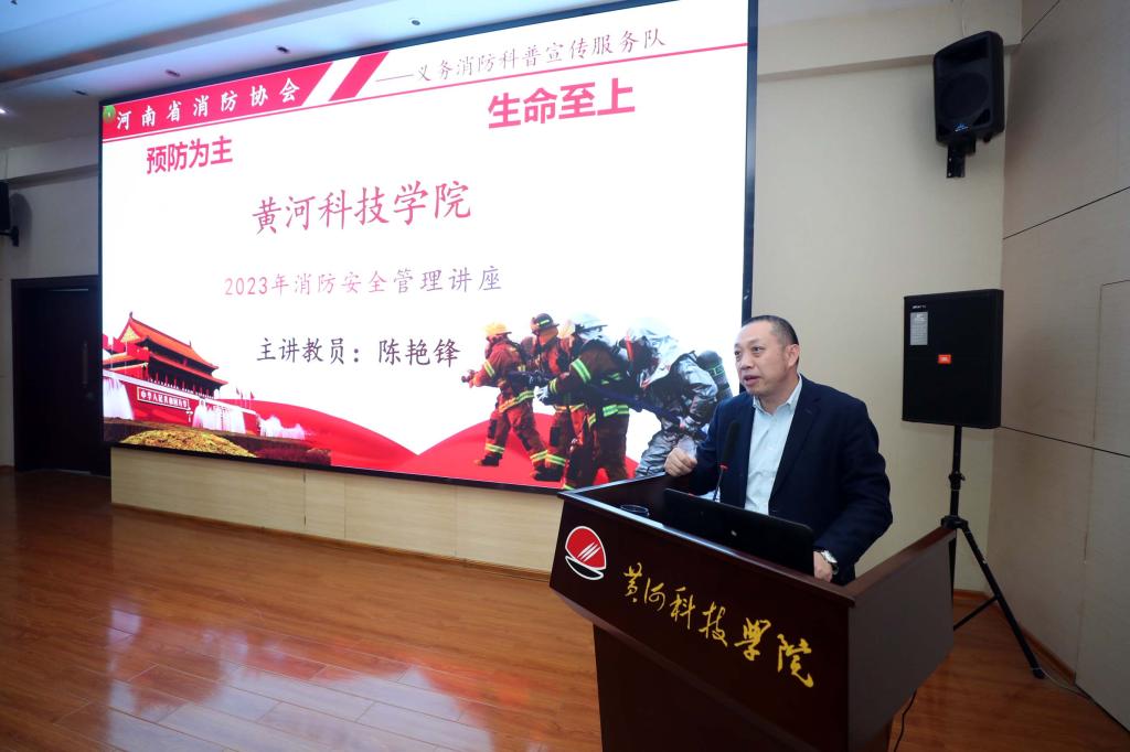 启动仪式结束后,河南省消防协会义务消防科普宣传服务队陈艳锋主任为全体参会人员作消防安全管理专题学习报告,他从消防法律法规、消防主体责任、抓好消防安全四个能力建设、学校火灾特点、发生火灾如何处置等方面进行了专题授课,进一步深化消防安全大学习大培训,推动将消防安全意识转化为行动自觉。