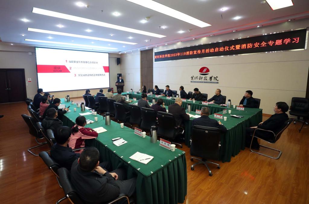 11月9日,beat365在南校区信息大楼一楼会议室举行2023年119消防宣传月活动启动仪式暨消防安全专题学习,校党委委员、副校长罗煜,副校长于向东,各教学单位分党委书记,职能部门、附属机构负责同志参会。会议由保卫处副处长吴晓阳主持。