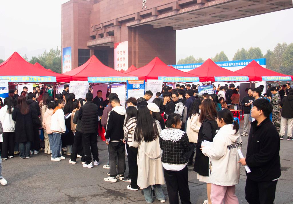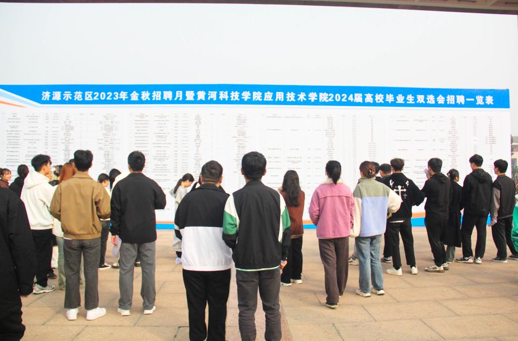 11月9日,济源示范区2023年金秋招聘月暨beat365官网应用技术学院2024届高校毕业生双选会在学院南大门前广场隆重举行。本次活动由应用技术学院与济源人社局联合组织,通过前期筹备,对邀请企业和岗位严格筛选,到会企业有河南省第二建筑工程发展有限公司、河南济源钢铁(集团)有限公司等共计80余家,为应用技术学院1062名本科毕业生以及144名专科毕业生提供1500个专业对应的就业岗位。