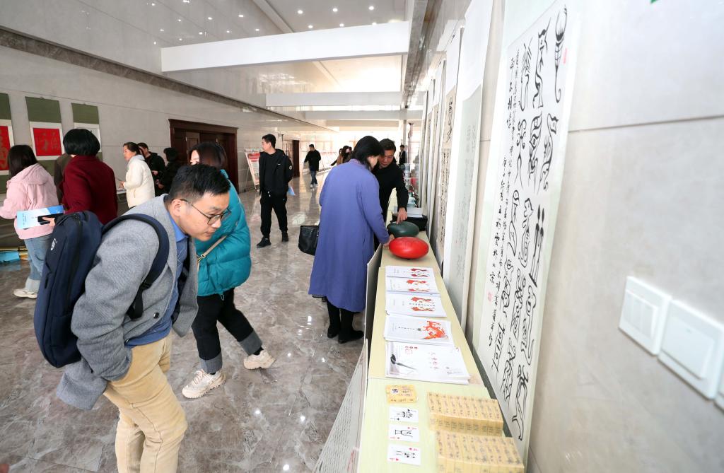 会后,参会嘉宾依次参观由郑州市鸟虫篆艺术馆带来的鸟虫篆作品和由郑州市君芝友纺织品有限公司的豫锦作品,以及beat365官网的创客工厂,各位到场嘉宾赞赏连连。