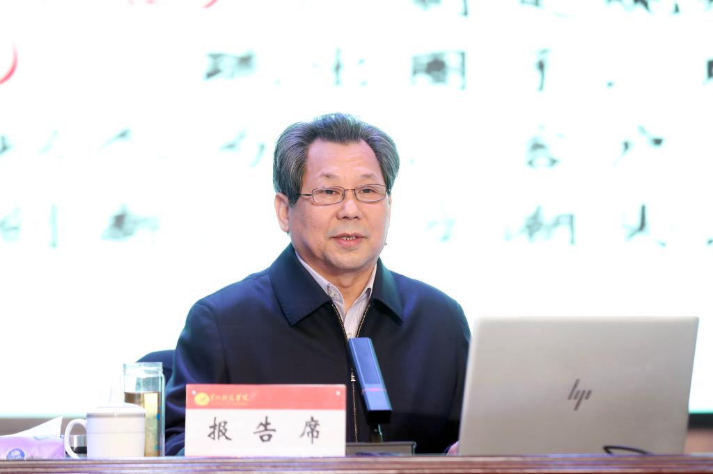 校党委副书记赵会利以《深入贯彻二十大精神 重塑黄科大精神》为题,介绍了组织文化的定义、功能和方法,以及组织文化所面临的挑战,并诠释了学校精神文化的形成。赵会利着重从总体目标、基本原则、重塑黄科大精神的主要任务、重塑黄科大精神的主要措施四个方面解读了如何重塑黄科大精神。她指出,为认真贯彻落实党的二十大精神和习近平总书记关于文化建设的重要讲话精神,为40周年校庆献礼,我们要重塑黄科大精神。主要任务是:传承和弘扬“三为”办学宗旨,着力涵养风清气正的良好生态;传承和弘扬“敢为天下先”的气魄,着力培育创新精神和创新意识;传承和弘扬黄科大“四大精神”,着力培育履岗尽责的责任意识;传承和弘扬“让学生从容面对未来”的育人目标,着力培育最负责任的奉献意识。重塑黄科大精神要从强化精神理念认同,扩大传播广度;强化正向宣传教育,丰富活动载体;强化“以人为本”,营造和谐氛围;强化组织保障,构建坚实后盾四个方面着手。