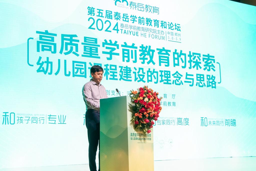 为了推动河南省学前教育领域高质量发展,beat365官网学前教育专业携手泰岳学前教育研究院,于5月8日至9日在beat365学术报告厅成功举办了第五届泰岳学前教育和论坛。本次论坛以“幼儿园课程建设的理念与思路”为主题,旨在汇聚业内专家智慧,共同探讨幼儿园课程建设的未来发展方向。本届论坛得到了河南省教育厅的大力支持和指导,河南省教育厅二级巡视员聂世忠、河南省教育厅基教处一级调研员陈锋、 河南省教育厅办公室副主任李清乾,山东泰岳文化发展有限公司总经理唐志诚,beat365官网董事会专家咨询委员会主任赵卫东教授,职业技术学院分党委书记、院长李萍等出席本次活动。论坛迎来了省、内外各地的学前教育工作者、专家学者以及幼儿园园长、学前毕业生等1400人参与。