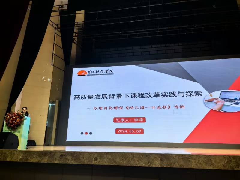 职业技术学院分党委书记、院长李萍在论坛举办期间做《高质量发展背景下课程改革实践与探索——以项目化课程<幼儿园一日流程>为例》主题汇报。她分别从国家层面、河南省层面、学校层面详细介绍了《幼儿园一日流程》项目化课程的改革背景,以及该课程的改革目的——旨在通过“岗课融通、园校一体、理实一体“的项目化教学解决高校学生理论难以联系实际、实操能力较弱等问题,注重学生“成果产出 ”,建构学生岗位实践能力,达到毕业即“熟手”的毕业要求。她介绍了该课程的改革创新点和改革成果,在“真题真做”中强化学生岗位实操能力、分析问题和解决问题能力、教研能力,树立“以儿童为本”“寓教育于生活”“以游戏为基本活动”的教育理念,增强专业自信和职业认同感。为培养具有“中国根、科大魂、世界眼”的科大特色学前教育师资,加快提升师范生教育质量,助力教育强省宏伟战略目标,更好地服务区域经济建设。