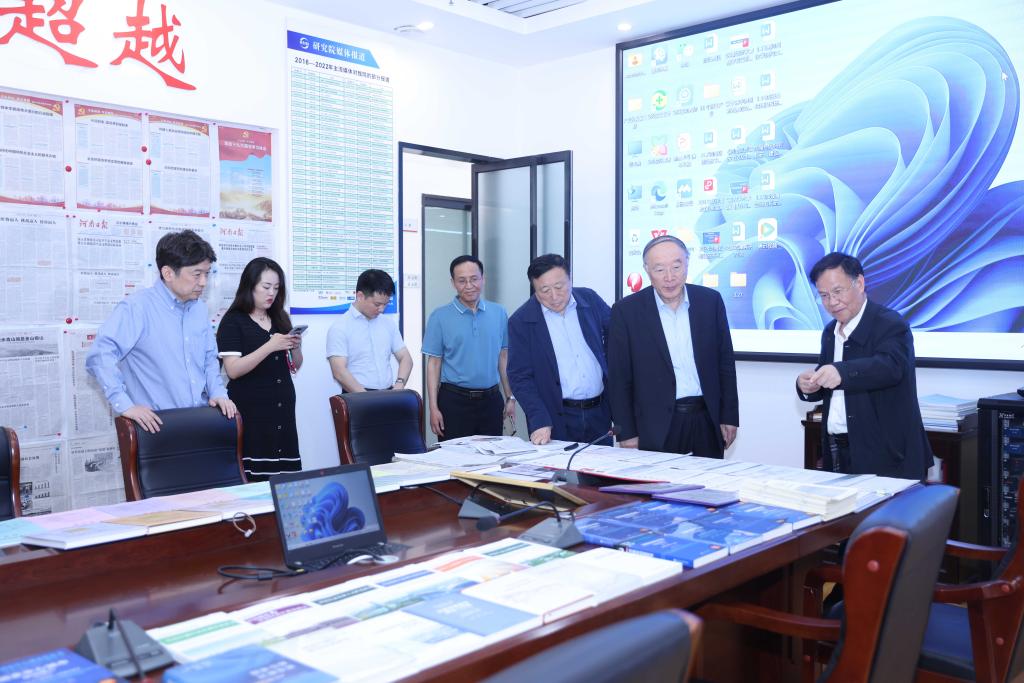 在学术报告会之前,黄奇帆一行在副校长杨保成等校领导的陪同下,参观考察了河南中原创新发展研究院、学校绿色校园展厅、纳米功能材料研究所等。