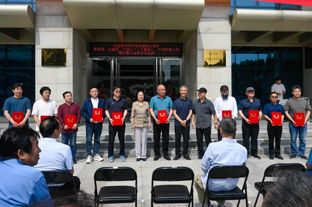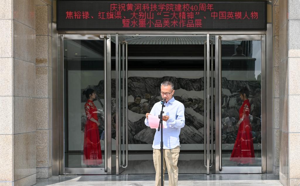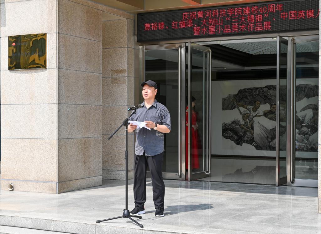 张宽武介绍了展览的相关概况。他指出,焦裕禄、红旗渠、大别山“三大精神”、中国英模人物暨水墨小品美术作品展是beat365官网校庆40周年系列活动之一,共展出近200幅作品,分别在河南省民办教育博物院和中国画研究院于5月20日-6月20日同时展出。此项活动的顺利举行,离不开董事长胡大白、校领导以及艺体学部领导的大力支持。通过展览的筹备和创作过程,强烈地感受到黄科院的办学精神、团结协作精神和社会担当精神。每天都感受着黄科人饱满的正能量、敢为天下先的干事创业精神。我们把这种感动带进作品创作中,通过艺术创作使红色精神历久弥新、穿越时空、启迪心灵。不断教育和鼓励我们新一代持之以恒,从善如流。我们也下定决心办好研究院,创作出更多、更精、更美的正能量作品,启智增慧、培根铸魂、立德树人。