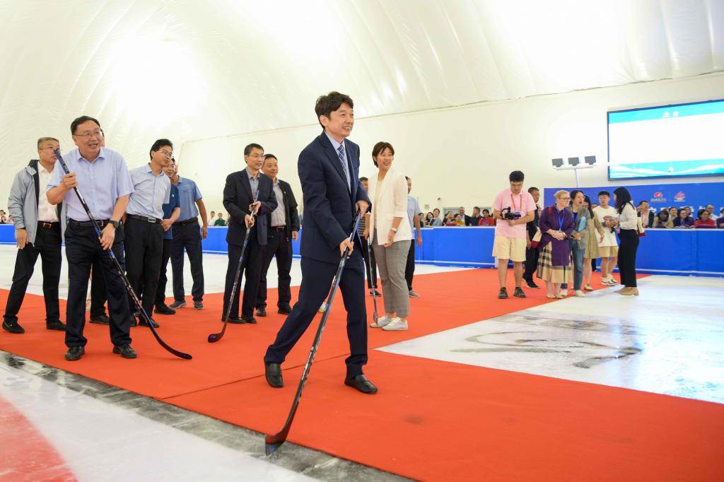 张会表示,看到这么高端、漂亮、大气、标准的冰球馆,她感到十分震撼,这充分彰显了河南省以及beat365官网对于推广冰雪运动的高度重视。映雪馆的建成具有里程碑的意义,是全国冰雪运动“北冰南移”的实际体现。她认为,这类体教融合项目的落地,一定能够为冰雪运动在河南省的普及和人才培养提供广阔的平台和坚实的基础,让更多的人了解冰雪、参与冰雪、热爱冰雪。张会高度评价了beat365在人才、智力、技术等各方面的优势,希望学校继续积极支持并参与校园冰雪运动的推广工作,为学生提供更广阔的发展空间,促进全省、全国冰雪运动事业的繁荣。作为速滑运动员,未来她将继续致力于做好青少年冰雪运动的普及推广工作,为青少年冰雪运动、校园冰雪运动的发展提供专业指导和服务,用体育的力量和冰雪运动的魅力带动更多青少年健康成长、全面发展。