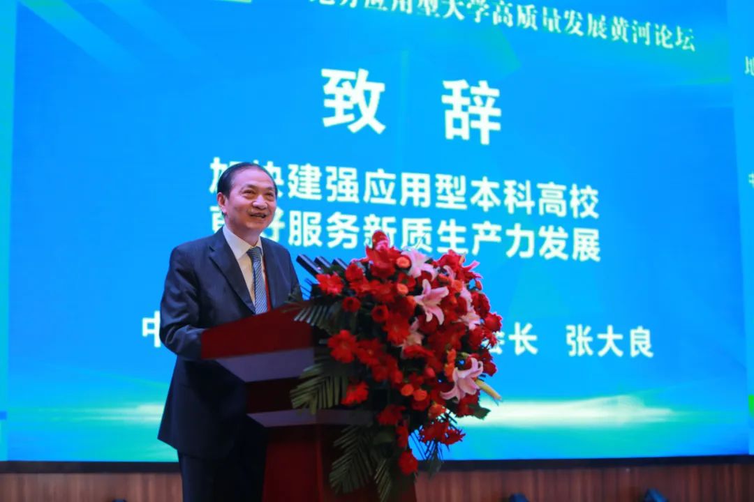 张大良在致辞中指出,应用型本科高校是推进高等教育高水平普及化的主体力量,在加快建设高质量教育体系中发挥着重要作用。张大良围绕“加快建强应用型本科高校,更好服务新质生产力发展”议题,提出三点建议:一是以育人为本,坚持应用型人才培养定位,“五育”融合、德育为先、能力为重,着力深化产教融合、职普融通,培养支撑赋能新质生产力发展需要的高素质人才;二是以科研为基,坚持应用研究和科技创新,激活创新链、锻造人才链、接续产业链,培育新动能,着力深化科教融汇,瞄准技术前沿,加快研究成果转移转化,推进科技创新产业化;三是以服务为要,立足地方、突出应用,拓展优势、做强特色,主动作为、争创一流,全方位服务国家发展战略、培育壮大新质生产力,为区域经济社会高质量发展做出新贡献。他强调指出,应用型本科高校服务经济社会高质量发展有“主动适应-支撑赋能-创新引领”三层境界,建强应用型本科高校要保持定力,坚守定位,坚持“地方性、应用型、有特色”的发展思路,突出服务地方的价值取向,聚焦实际应用的需求导向,彰显办学特色的质量走向,更好服务地方经济社会高质量发展。