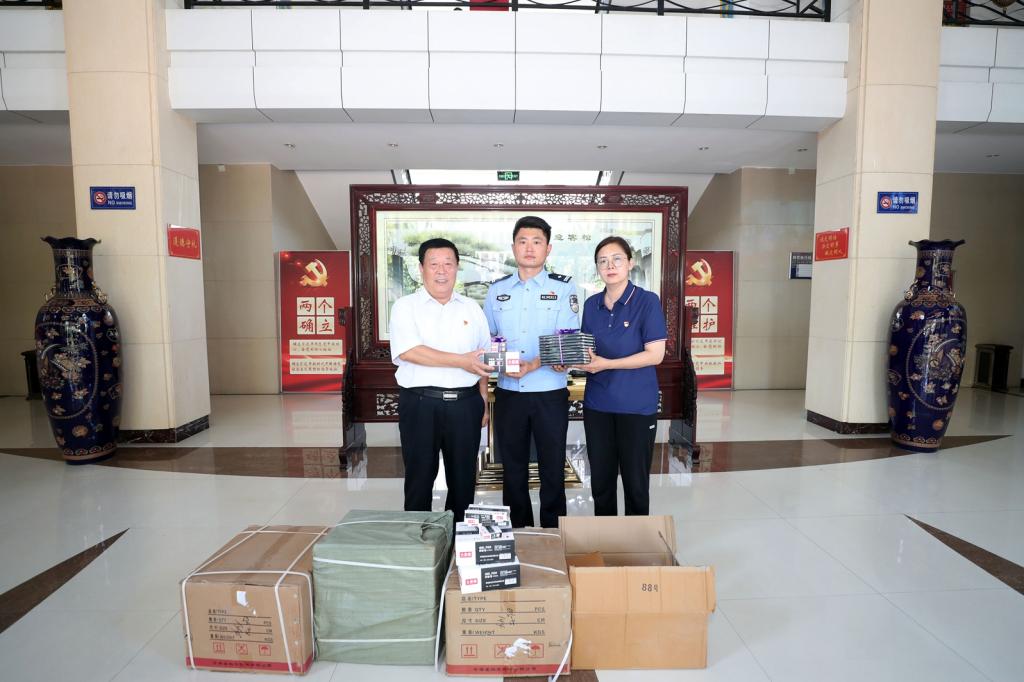 警示教育活动后,校董事会专家委员会主任赵卫东、校纪委书记王威代表学校向河南省郑州监狱捐赠了学习用品。