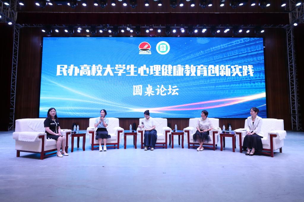 在圆桌论坛环节,在学校心理健康中心主任卢琰的主持下,郑州西亚斯学院心理健康教育与咨询中心主任梁丽娜、山东工程职业技术大学商学院副院长郭小凡、广州理工学院辅导员席宇欣、海口经济学院心理中心副主任王红亚就“民办高校大学生心理教育创新实践”主题进行了深入的探讨。