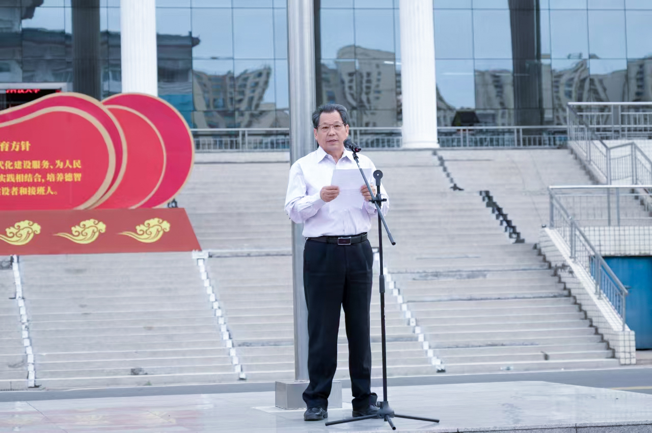 9月2日,beat3652024级全体新生参加首次升国旗仪式。校领导孔留安出席仪式并讲话。仪式由学生中心主任张丕万主持。