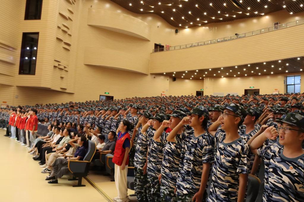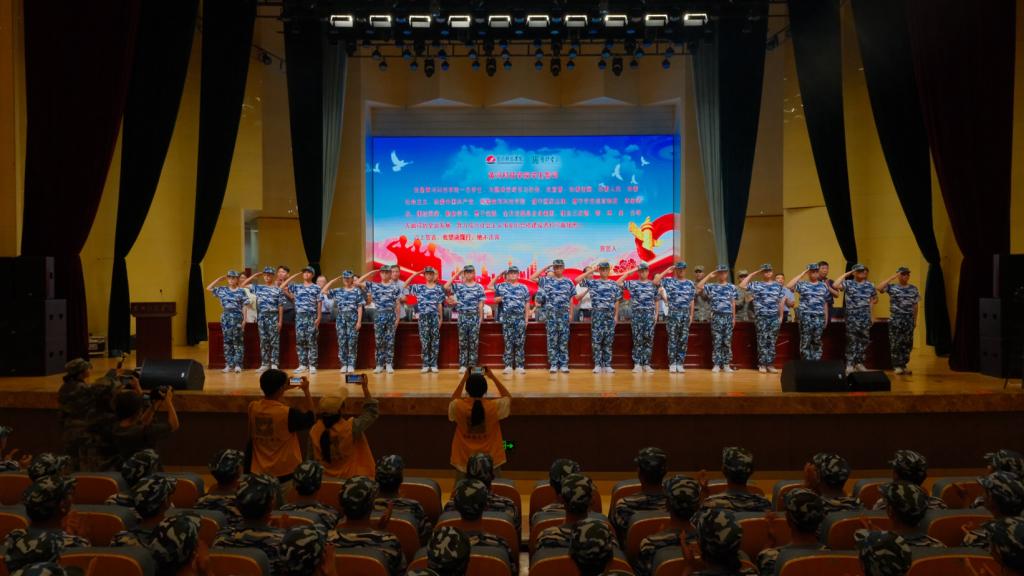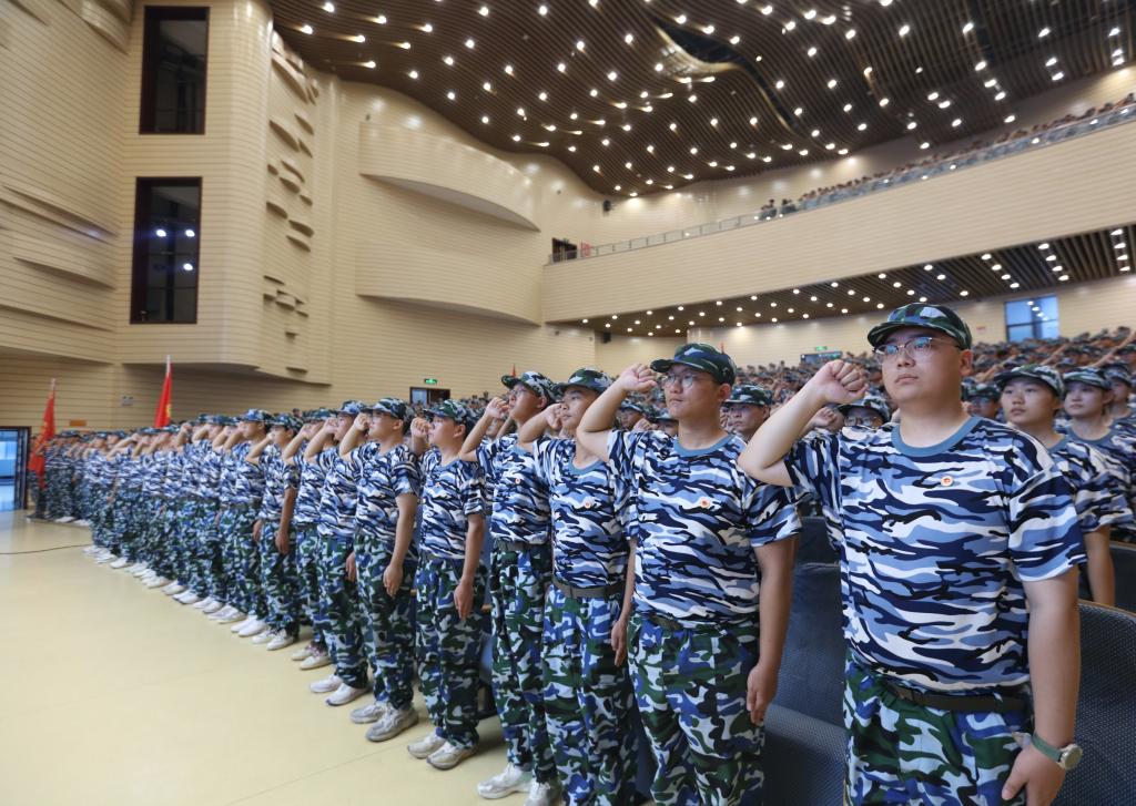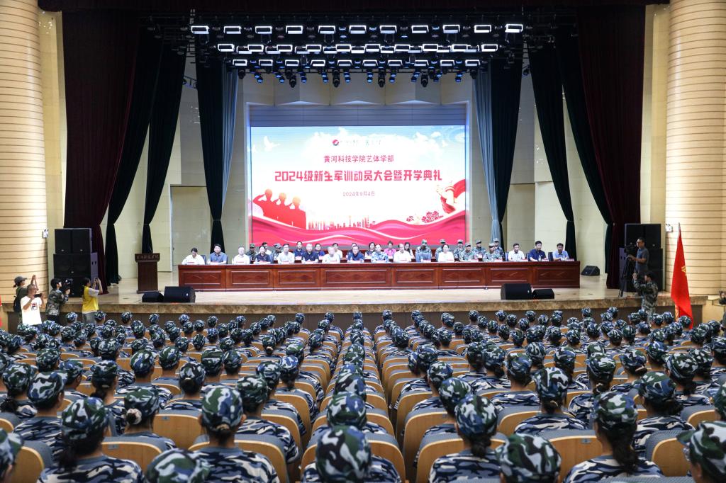 军训教官代表、教师代表、辅导员代表和新生代表分别发言。军训教官代表闫星宇表示,作为教官,他们将以身作则,用身边的优秀榜样激励新生;认真履行教官职责,用过硬的军事本领引领新生;想同学之所想,急同学之所急,用温度和真情帮助新生。教师代表、河南省优秀教师标兵、传媒艺术科教中心副教授娄凤娟把“探索、成长、担当”三个关键词送给2024级新生,希望他们发扬“敢为天下先”的黄科大精神,学会独立思考,学会团队合作,学会承担责任,锤炼过硬本领,担当时代使命,在青春的赛道上争取跑出当代青年的最好成绩。新生辅导员代表、音乐科教中心2024级音乐专业辅导员杨娜娜希望同学们打好专业基础,扎实知识技能;做好生涯规划,明确前进方向;坦然面对成败,拥有强大内心;始终坚守初心,铭记责任担当。中央人民广播电视台“夏青杯朗诵大赛”获奖选手、2024级播音与主持艺术专业学生韩文君代表新生发言。她说,广大新生将在军训中以军人的标准严格要求自己,服从命令听指挥,坚决完成各项训练任务,继承“开拓、拼搏、实干、奉献”的黄科大精神,以“敢为天下先”的勇气做一个出彩的黄科大人。