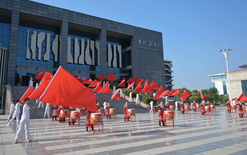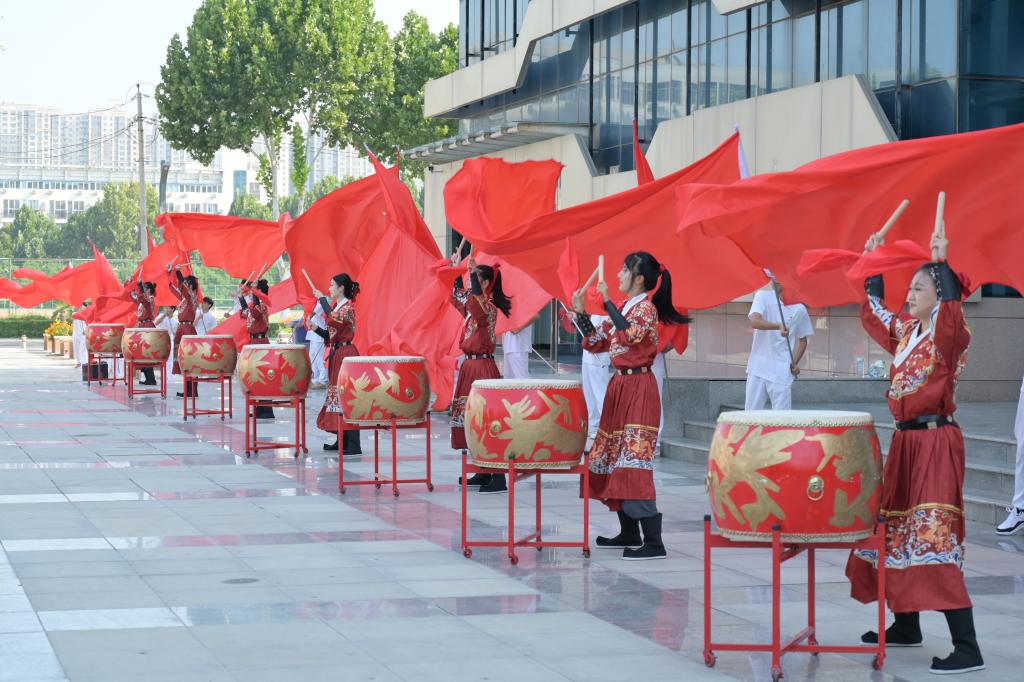 9月4日,beat365学术报告厅广场上红旗招展,鼓声震天。30名身着飞鱼服的艺体学部学子,以铿锵有力、激昂热烈的鼓声欢迎领导及2024级新生前来参加新生军训动员大会暨开学典礼。学校工会主席陈勇民,副校长罗煜,艺体学部部长王晏、分党委书记白云庆,部分单位负责人以及艺体学部各中心主任、各辅导员、任课教师、青年突击队员参加。活动在多个网络平台实时直播,吸引了30000人次在线观看。