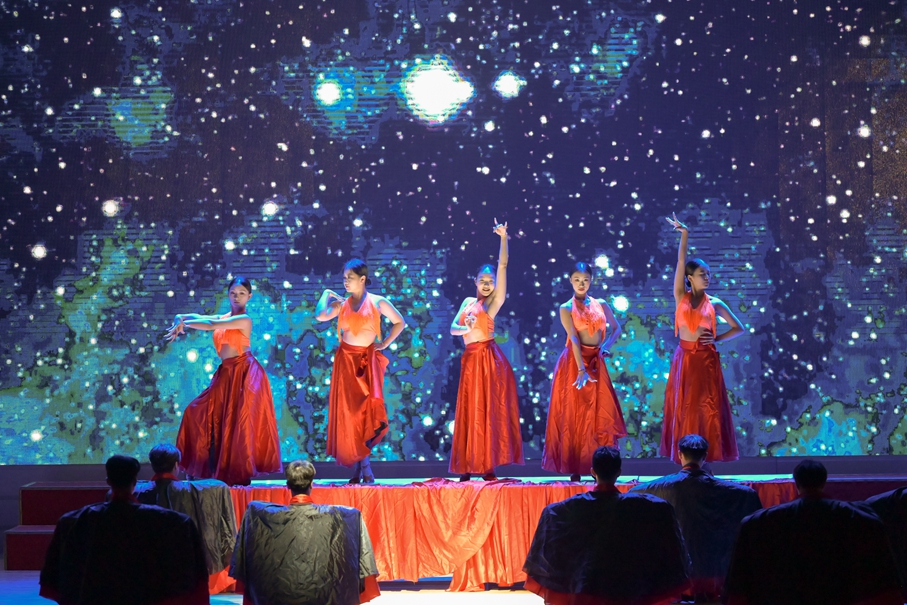 在仪式的最后,艺体学部为2024级新生精心准备了以“青春踔厉筑梦,奋楫扬帆启程”为主题的文艺演出。演出以丰富多彩的节目形式展现了师生们的才华和热情:热烈奔放的拉丁舞《选择》让现场的气氛再次达到高潮,武术《精武风采》刚柔并济,展现了力量与艺术的完美结合;流行歌曲合唱串烧《上春山》《像你这样的朋友》,把当代大学生阳光、青春、活力、充满希望的精神面貌展现得淋漓尽致;独舞《林海雪原》通过舞者的肢体语言和情感表达,展现了北方林海雪原的独特魅力;合唱《我的心里只有你没有她》《土尔扈特勇士》在聂蓓蓓老师的指挥下,男生合唱团以专业的技巧和深厚的感情诠释了合唱的魅力。