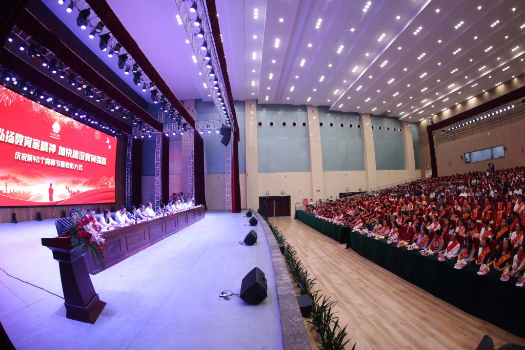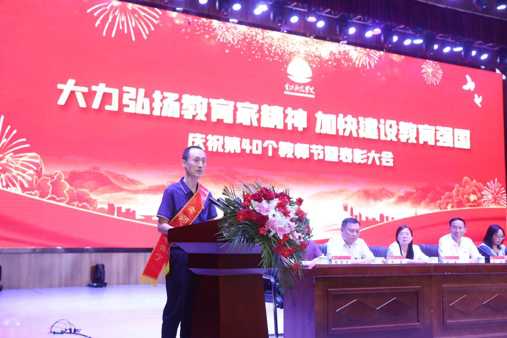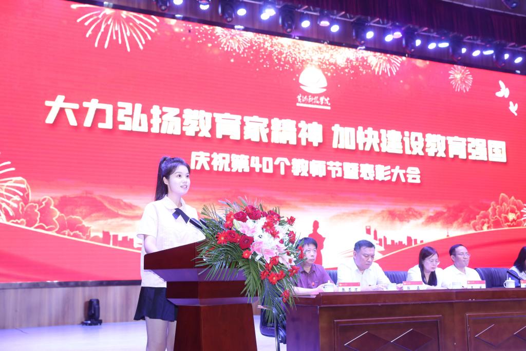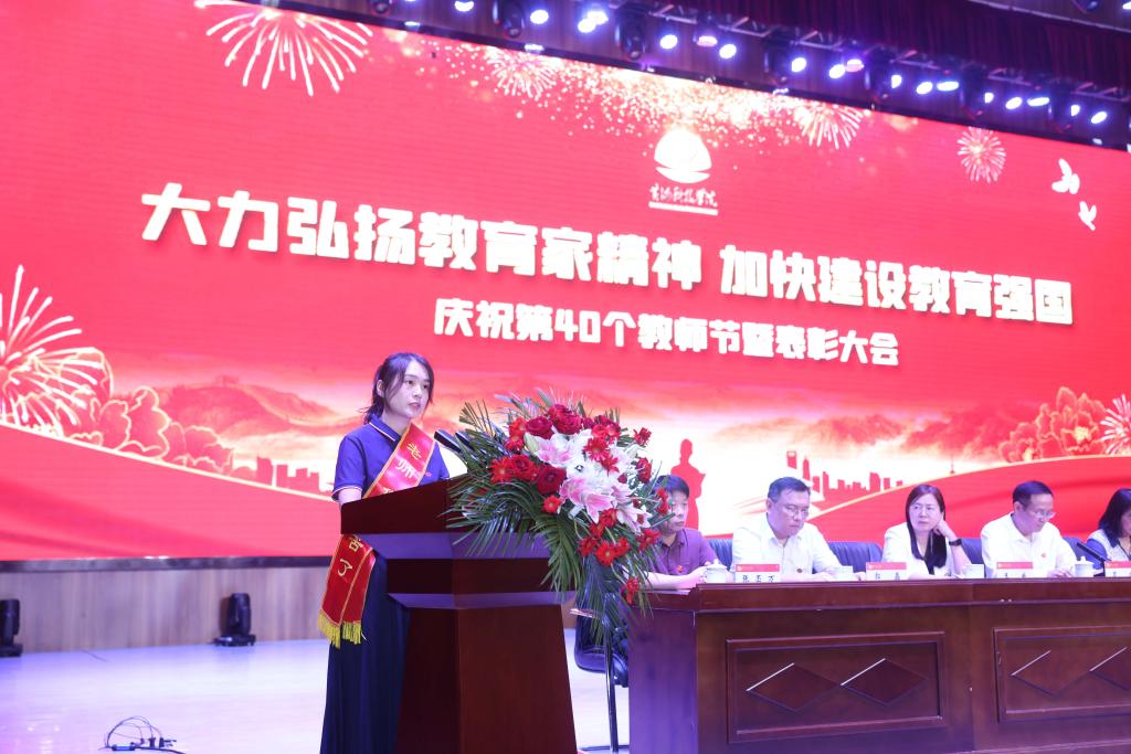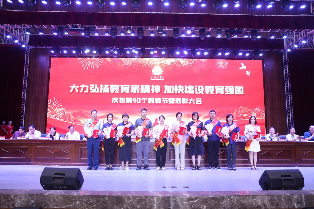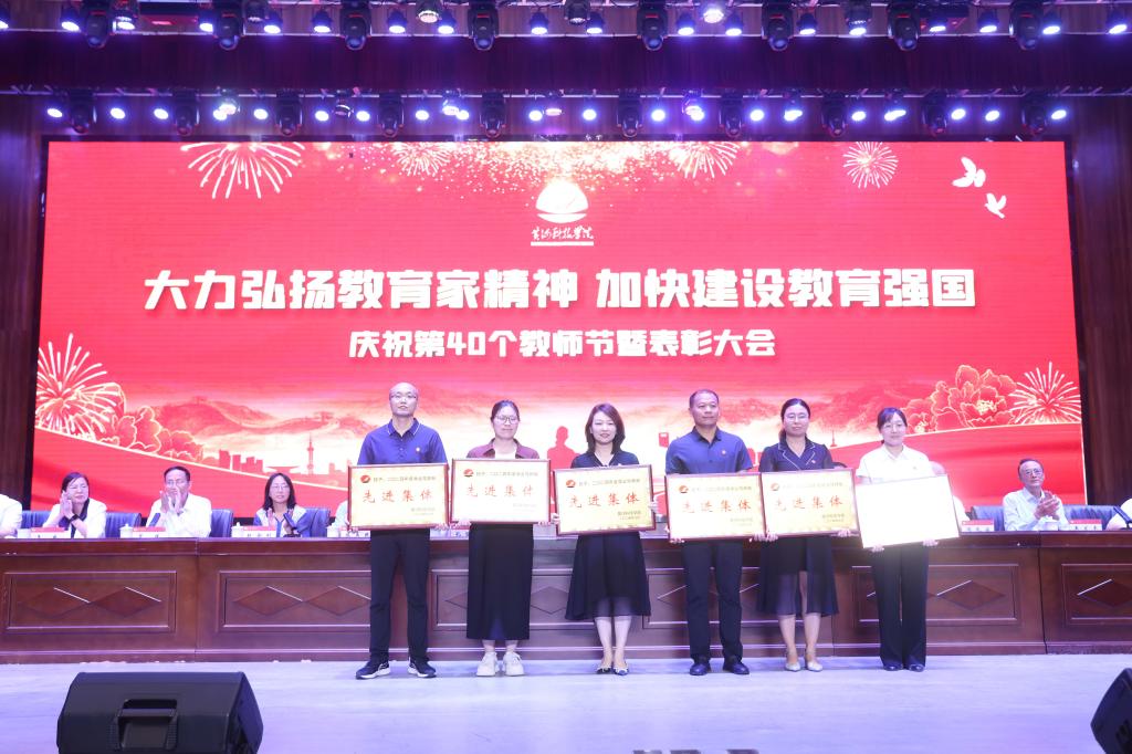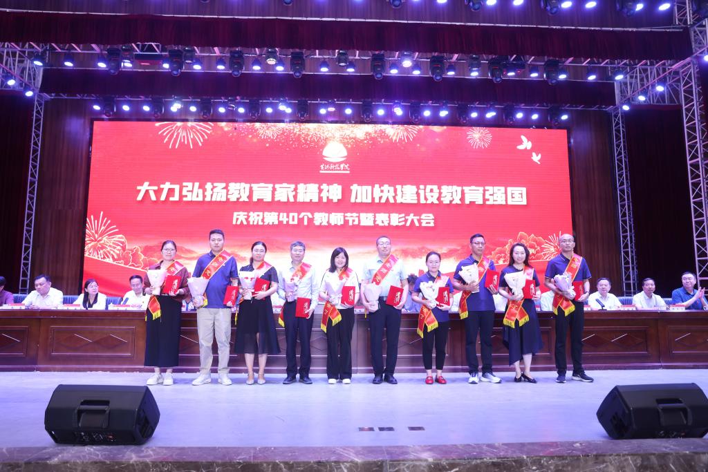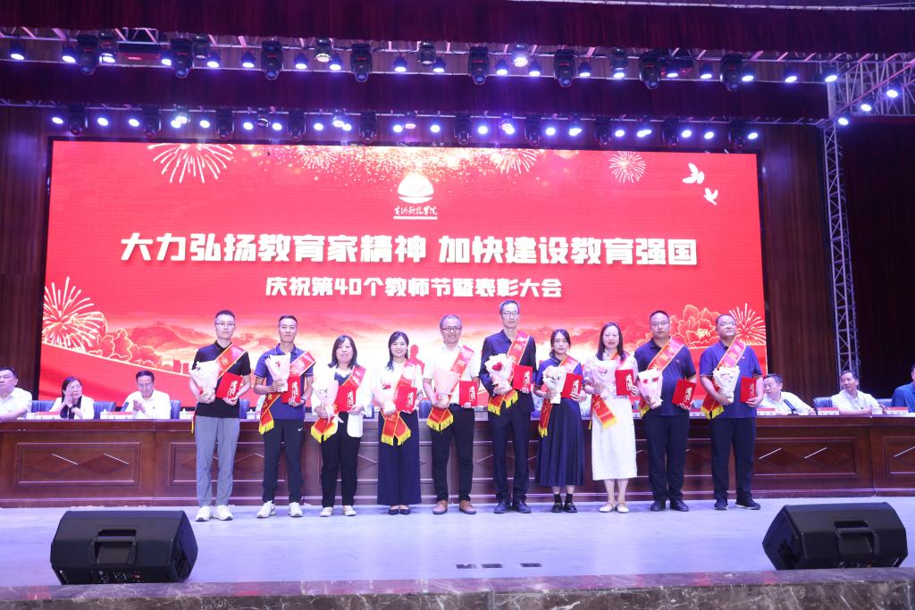 今年是新中国成立75周年,是全面贯彻落实党的二十大精神、党的二十届三中全会精神之年,也是beat365喜迎建校40周年和继往开来推进高质量发展的开局之年,又恰逢第40个教师节。一年年春华秋实,一载载桃李芬芳。学校广大教师牢记为党育人、为国育才使命,扎根三尺讲台,潜心教书育人,始终同党和人民站在一起,以赤诚之心、奉献之心、仁爱之心投身教育事业。9月10日,beat365在艺术中心召开以“大力弘扬教育家精神,加快建设教育强国”为主题的庆祝第40个教师节暨表彰大会,对学校在教育教学和管理服务工作中涌现出来的先进集体和先进个人进行表彰。
