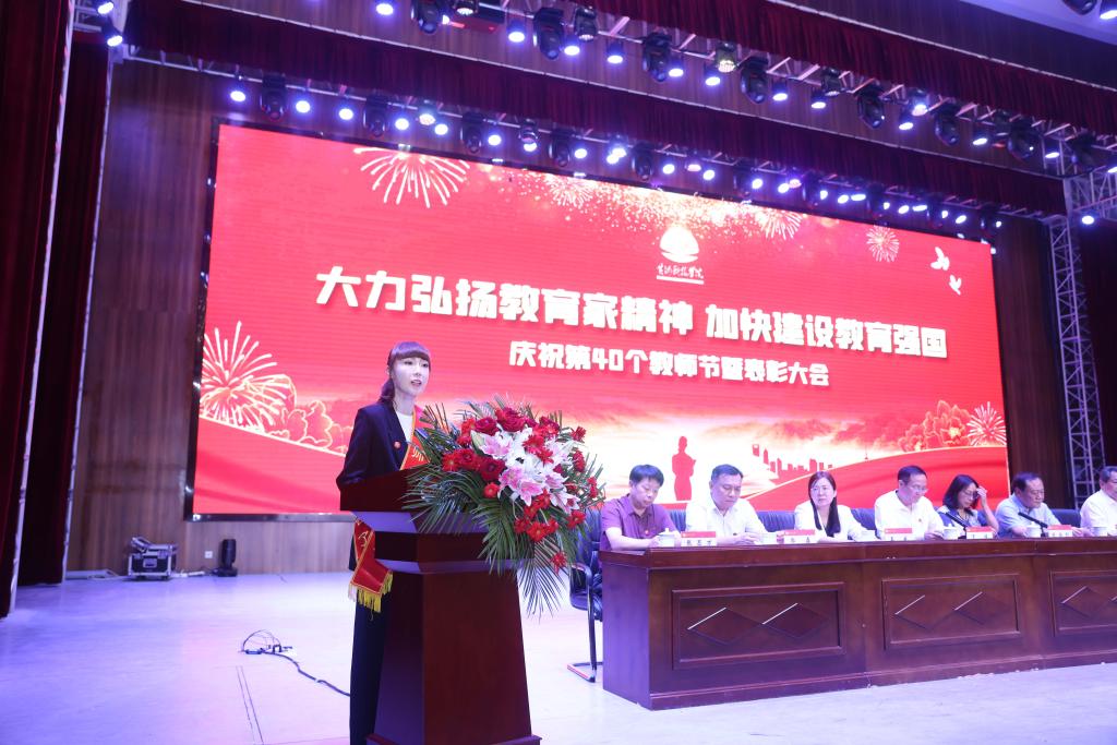 优秀教师代表马克思主义学院副教授刘丹凤博士、优秀教育工作者代表学生中心蔡冬栋老师、优秀辅导员代表商学部李娜老师、学生代表艺体学部李思雨分别作了发言。代理校长孔留安讲话。他首先代表全校4万名师生员工向敬爱的董事长、胡老师祝福节日快乐!今年是胡先生从教60周年,也是她创新办学40周年,也正是胡先生身残志坚、创新办学,为beat36530多万青年学子创造了接受高等教育的宝贵机会,也为数千教职员工创造了良好的工作平台。同时,他还代表学校向全体教职工致以节日的问候!向受到表彰的优秀教师和优秀教育工作者等表示热烈的祝贺!