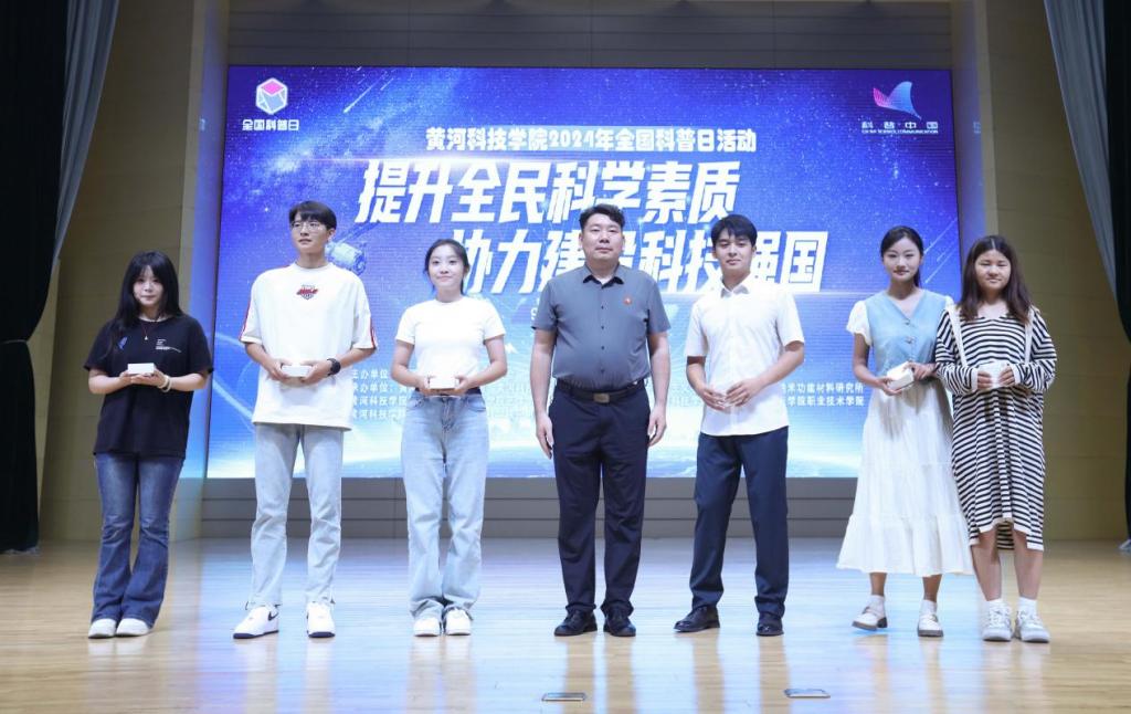 郑高飞宣布学校首批科普专家名单,张守仁等38名同志被聘任为校科普专家,并为科普专家颁发了聘书。于春霞宣读了第十届河南省大学生机器人大赛、河南省科普教育基地讲解员大赛、郑州市科普讲解大赛和“点赞2024科普郑能量”活动获奖团队和选手名单,并为获奖者颁奖。