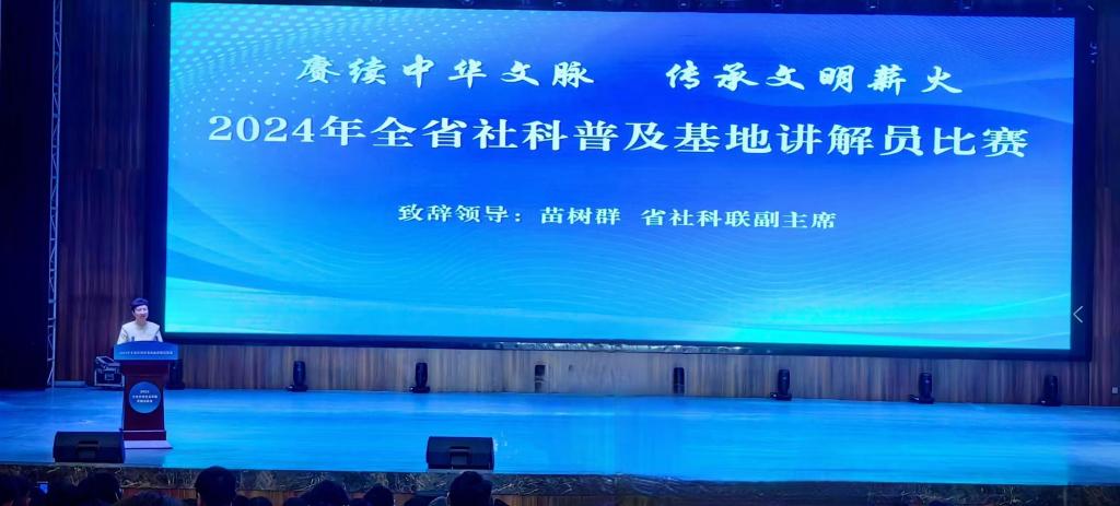 苗树群在致辞中指出,社会科学研究和社科普及工作必须坚持以习近平新时代中国特色社会主义思想为指导,贯彻落实习近平文化思想,贯彻落实党的二十届三中全会精神。社科普及基地是社会科学知识传播的重要平台,是传承弘扬中华优秀传统文化,培育和践行社会主义核心价值观的重要载体,社科普及基地讲解员是社科普及工作的重要力量,是中华优秀传统文化的重要传播者。她强调,这次比赛是全省社科普及周中的一场重要主题活动,也是为各省区社科普及基地讲解员大赛选拔推荐优秀选手。希望全省各级社科普及基地进一步强化沟通交流与合作,构建更接地气、更具生气、更有底气的社科普及工作体系,打造更多群众喜爱、网络热传的优秀社科普及视频作品,用主旋律和正能量,营造出崇尚科学的良好氛围,不断开创社科普及工作新局面。
