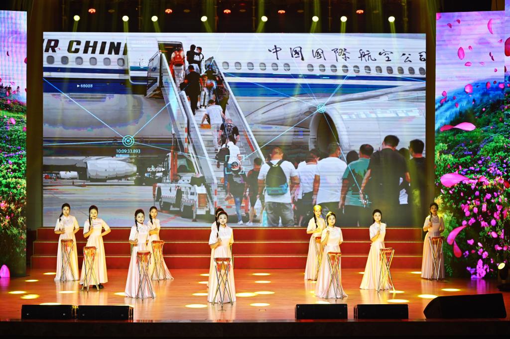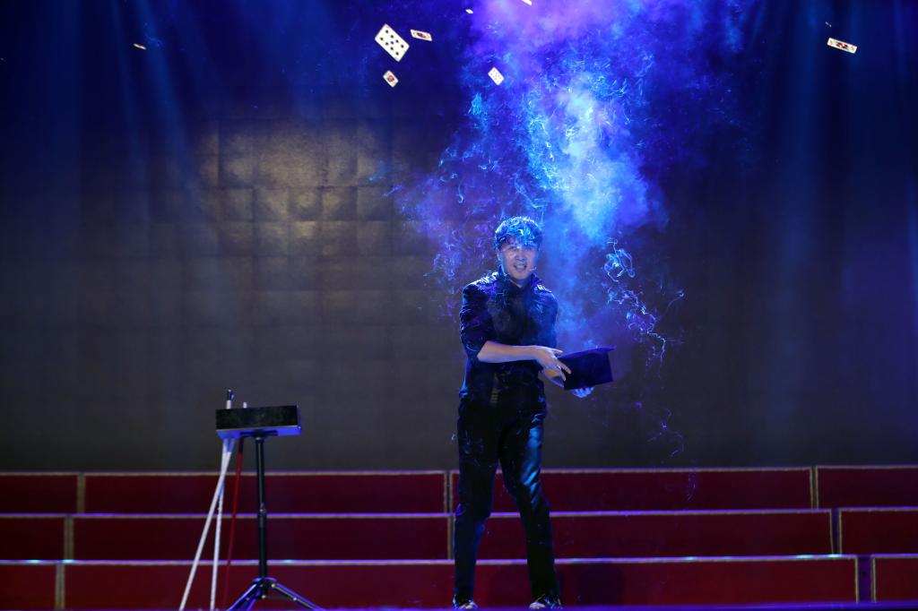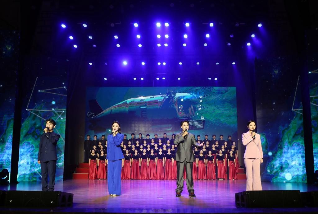 演出在开场歌舞《同一个世界·同一个梦想》中拉开序幕。《科技之光》篇章开启了一段全新的科普视界之旅,通过情景音诗画、舞蹈、河洛大鼓等艺术呈现,带领我们穿梭科技时空长廊,从中原古代科技文明之光到现代前沿科技创新领域,真切感受科技发展的辉煌历程,挥展科普之翼,让科普之光照亮科技强国之路。《非凡匠心》篇章聚焦了科技工作者在时代变革中的担当和作为。借助情景器乐、小品、音乐快板等丰富的艺术形式,讲述新时代最美科技工作者奋力攻坚、勇于创新的故事,感受我国加快实现高水平科技自立自强的时代步伐。《创新之路》篇章在科学与艺术的融汇中深刻感受到了科技的力量与魅力,激发了广大科技工作者探索未知、勇于创新的精神和热情。特别是魔术《科技幻旅》节目,通过与现场观众的互动体验,将传统的扑克牌魔术与新兴的电子科技进行了完美结合,带领大家共同进入一场充满无限可能的科技幻影,将整场演出推向了高潮。《筑梦启航》篇章则通过激昂的旋律、深情的歌词和富有力量的表演,寄寓了广大科技工作者们对未来的美好憧憬和期待,在这条充满挑战与机遇的道路上,他们以坚定的信念和不懈的努力书写了属于中国人的辉煌篇章。