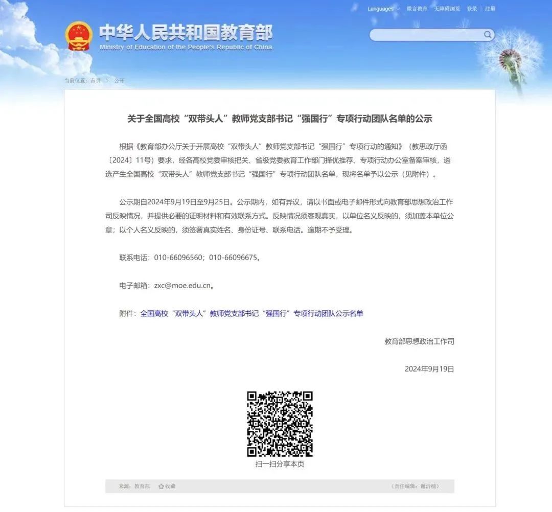 据悉,高校“双带头人”教师党支部书记“强国行”专项行动是为创新落实立德树人根本任务,深入贯彻落实教育部党组关于高校“双带头人”教师党支部书记培育工作的部署要求,充分发挥高校“双带头人”的示范引领作用,引导广大师生在以中国式现代化全面推进强国建设、民族复兴伟业新征程上砥砺新担当、展现新作为,组织开展的一项专项行动。