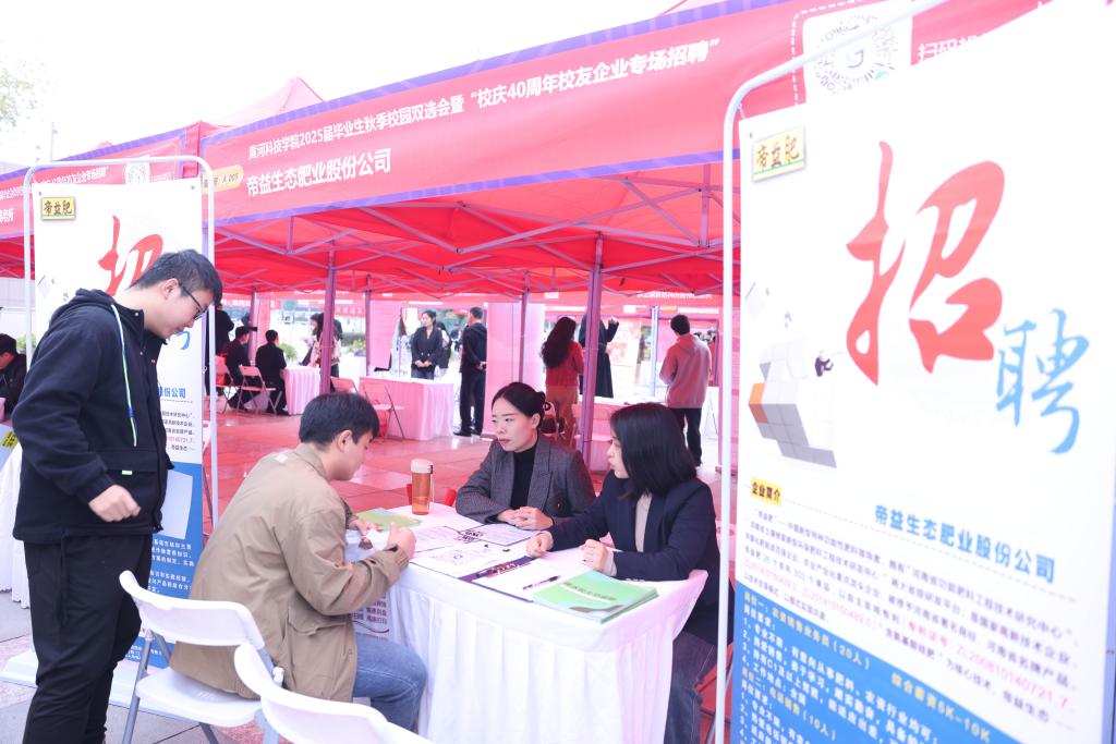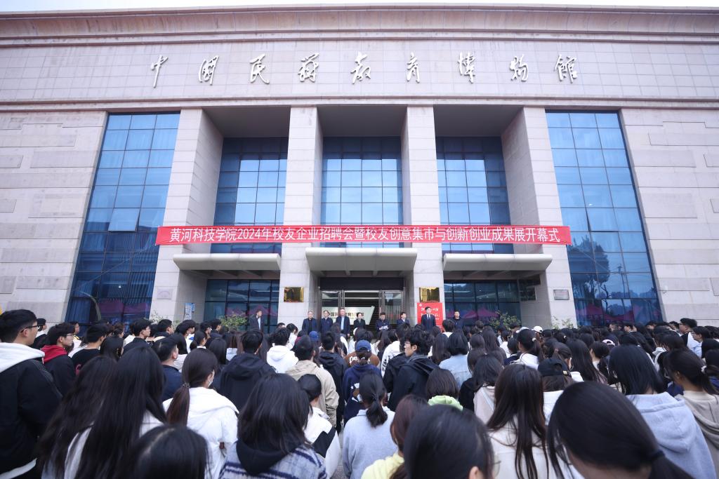 赵卫东致欢迎辞。他首先对远道而来的各位校友、企业代表、以及参与此次活动的师生代表,表示最热烈的欢迎和诚挚的感谢!他指出,校友是学校宝贵的财富和资源,也是学校改革发展的见证者和推动者。今天,学校以四十周年校庆活动为契机,以校友文化节的启幕为起点,搭建起了连接校友情感、展示校友风采、传承校园文化的重要平台。希望广大校友们通过校友文化节这个平台,加强校友与母校之间的联系,促进校友之间的交流与合作,共同为学校的建设发展出谋划策、添砖加瓦。学校2001届毕业生,河南大广电子科技有限公司总经理牛为民代表校友发言,他深情回忆了在校学习时光,创业历程,诉说对母校浓浓的赤子情怀。他鼓励在校学生时刻牢记“厚德博学,砺志图强”的校训,以敢为人先、踔厉奋发的坚韧品质,书写“开拓、拼搏、实干、奉献”的“黄科大”精神。在现场热烈的氛围中,胡大白宣布本次校友企业招聘会暨校友创意集市与创新创业成果展开幕。
