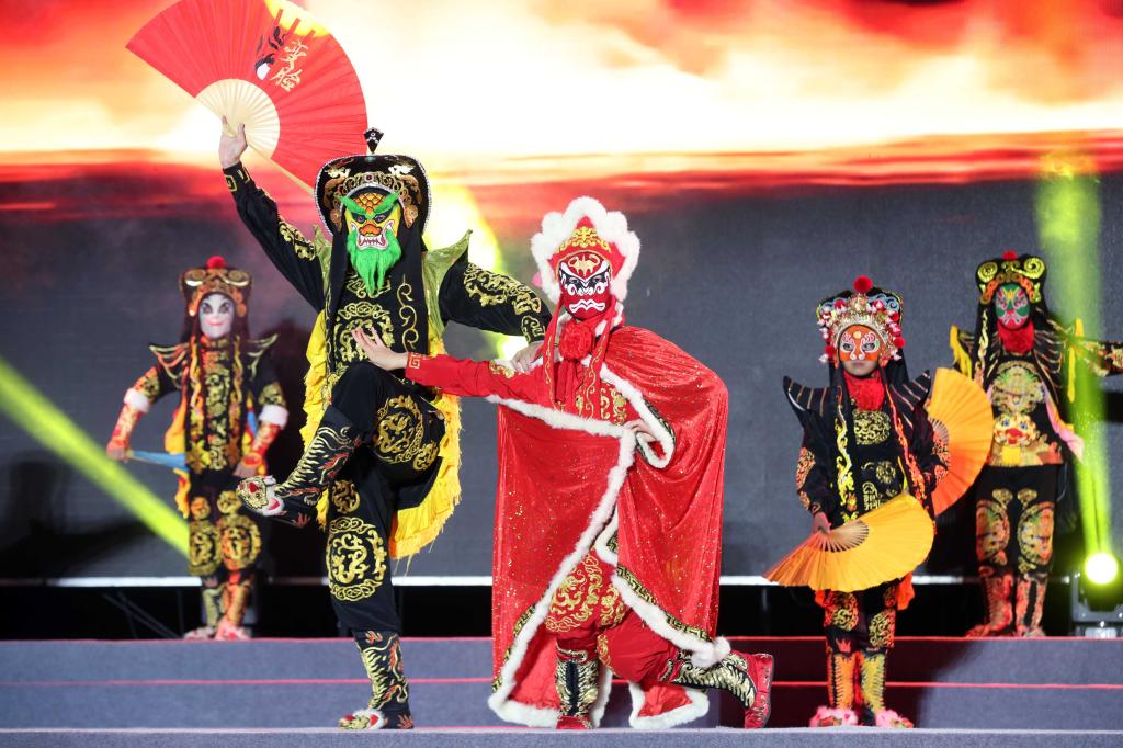 非遗瑰宝《川剧变脸姹紫嫣红》演员用脸谱将喜怒哀乐、善恶忠奸瞬间呈现,令人叹为观止,展现了中国传统文化的独特魅力。由40位校友倾情演出的《黄科正青春》,它歌唱着黄科大学子的梦想与希望,描绘着黄科大学子的奋斗与信仰,将晚会的气氛推向了新一轮高潮。跆拳道啦啦操表演《燃烧的青春》中,跆拳道选手们的动作既刚猛又优雅,他们的身姿在空气中划出一道道美丽的轨迹;啦啦操表演每一个转身、跳跃都充满了力量和美感,代表着张扬热烈、朝气蓬勃的精神力量,把青春的无畏与激情展现得淋漓尽致,赢得了观众们的热烈掌声。