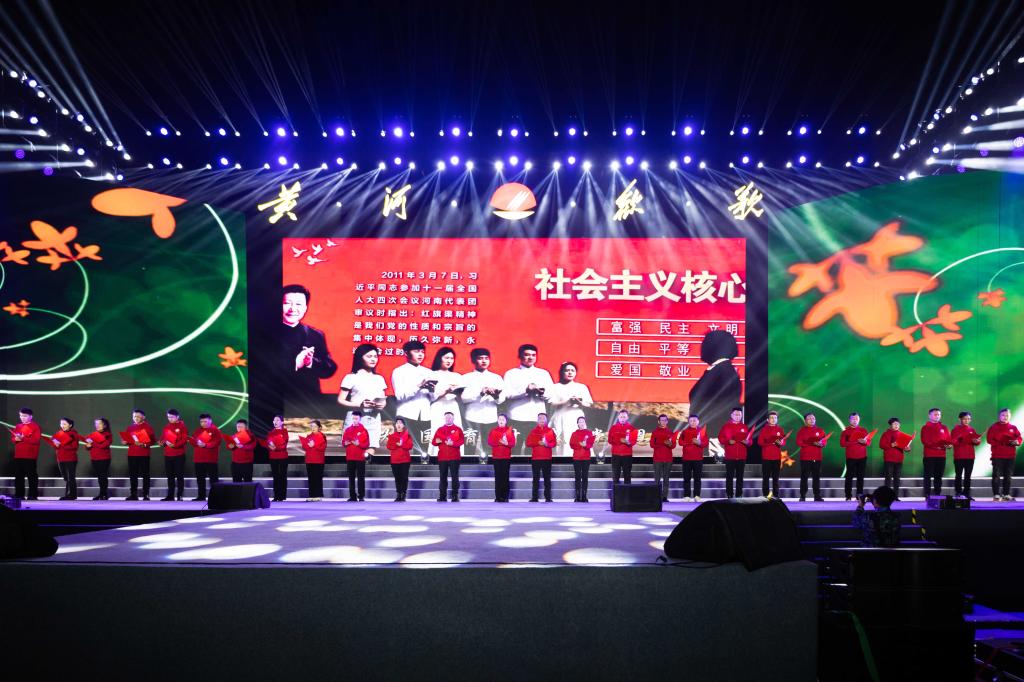 舞蹈《黄河儿女》优美的舞姿生动地再现了黄河所孕育的中华儿女在面对困难与挑战时的坚韧不拔,既是黄河的支流与主流紧密相连,又是校友与母校之间相连的深厚情感。歌舞《爱在每一天》饱含深情的歌舞表达对祖国、对母校的无限热爱,也唱出了黄科大以“办一所最负责任的大学”的办学愿景,用无私奉献的大爱,如涓涓细流,滋润着莘莘学子的心田。