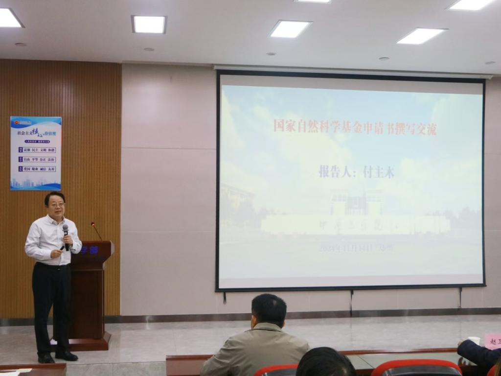 会议首先邀请中原工学院副校长付主木教授作“国家自然科学基金申请书撰写交流”报告。付教授针对国家自然科学基金项目的申报要点,从构思、撰写、审视、思考四个方面进行深入浅出的讲解。他强调,申报项目要聚焦于“你想要干什么?你为什么要干?你打算怎么干?为什么只能由你干”这四个问题主线,他用自己的基金本子为载体,生动翔实地将基金申请书的形成、审视、提交等过程进行了重点分析。付教授的报告对于beat365教师申报高层次项目提供了有益的帮助,内容丰富,案例生动。